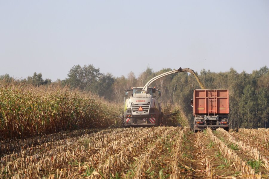 Ежедневно на кукурузных полях работает один комбайн – «Ягуар», за рулем – опытнейший механизатор Александр Викторович Мелецкий, который загружает в грузовики и трактора 700-800 тонн зеленой массы. На отвозке задействовано 6-7 единиц техники, ее количество зависит от продолжительности маршрута от места заготовки до сенажных траншей.
