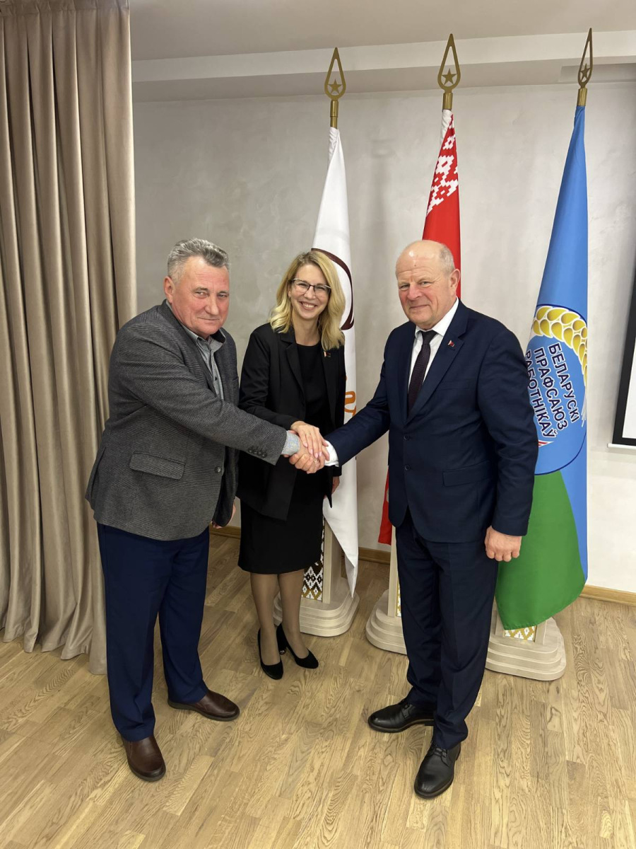 22 октября 2024 года председатель Гродненской областной профсоюзной организации Белорусского профсоюза работников АПК Михаил Михайлович Ситько посетил ОАО "Гроднохлебпром". В ходе встречи с Генеральным директором Леоновичем Виктором Ивановичем и председателем объединенной профсоюзной организации Семенович Екатериной Викторовной были рассмотрены вопросы морально-психологический климата в коллективе, своевременности выплаты заработной платы, коллективно-договорного регулирования трудовых отношений на предприятии и другие.