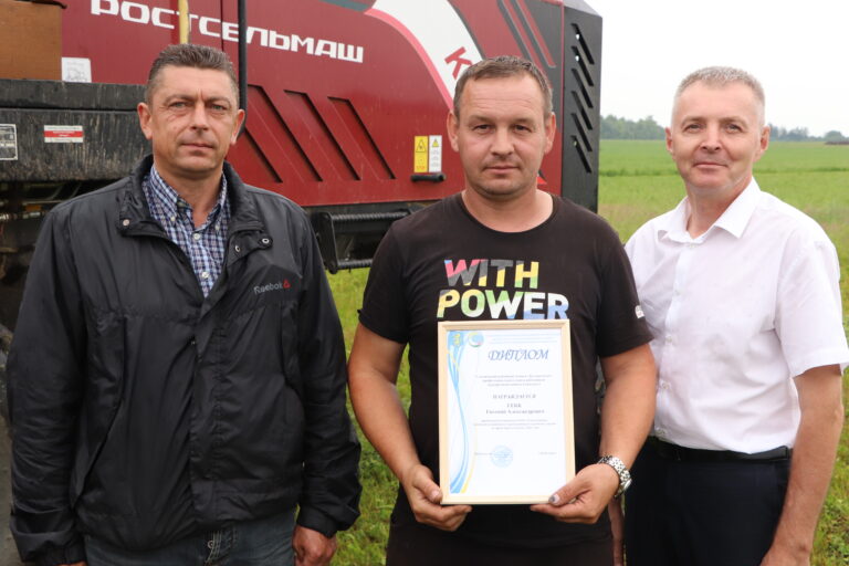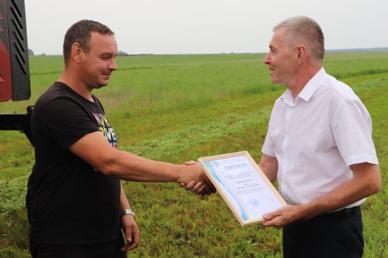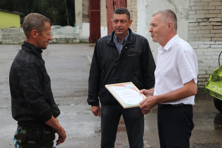 Свои победители есть и в ОАО “Сеньковщина”. Здесь в областном этапе соревнований лучший результат на заготовке кормов из трав первого укоса показал Александр Мелецкий. На районном этапе – Евгений Гекк. С заслуженной победой работников хозяйства также поздравил и председатель первичной профсоюзной организации ОАО “Сеньковщина” Николай Голенда.