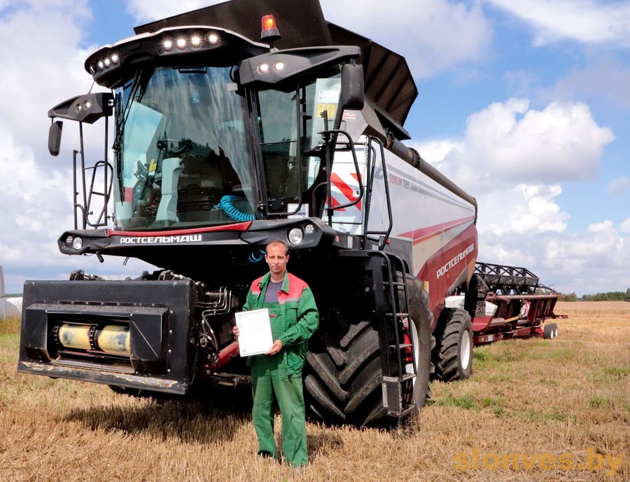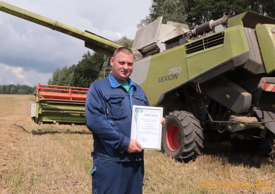 Первым принимал поздравления комбайнер ООО «Роданагрослонимский» Александр Сергеевич Рипинский. Мужчина намолотил 1000 тонн зерна и стал одним из победителей районного соревнования в своей группе. Александр Рипинский второй год участвует в уборочной кампании в качестве комбайнера, он очень доволен работой и ее результатами. К поздравлениям с заслуженной победой присоединилась председатель профкома ООО «Роданагрослонимский» Надежда Владимировна Сосновская.