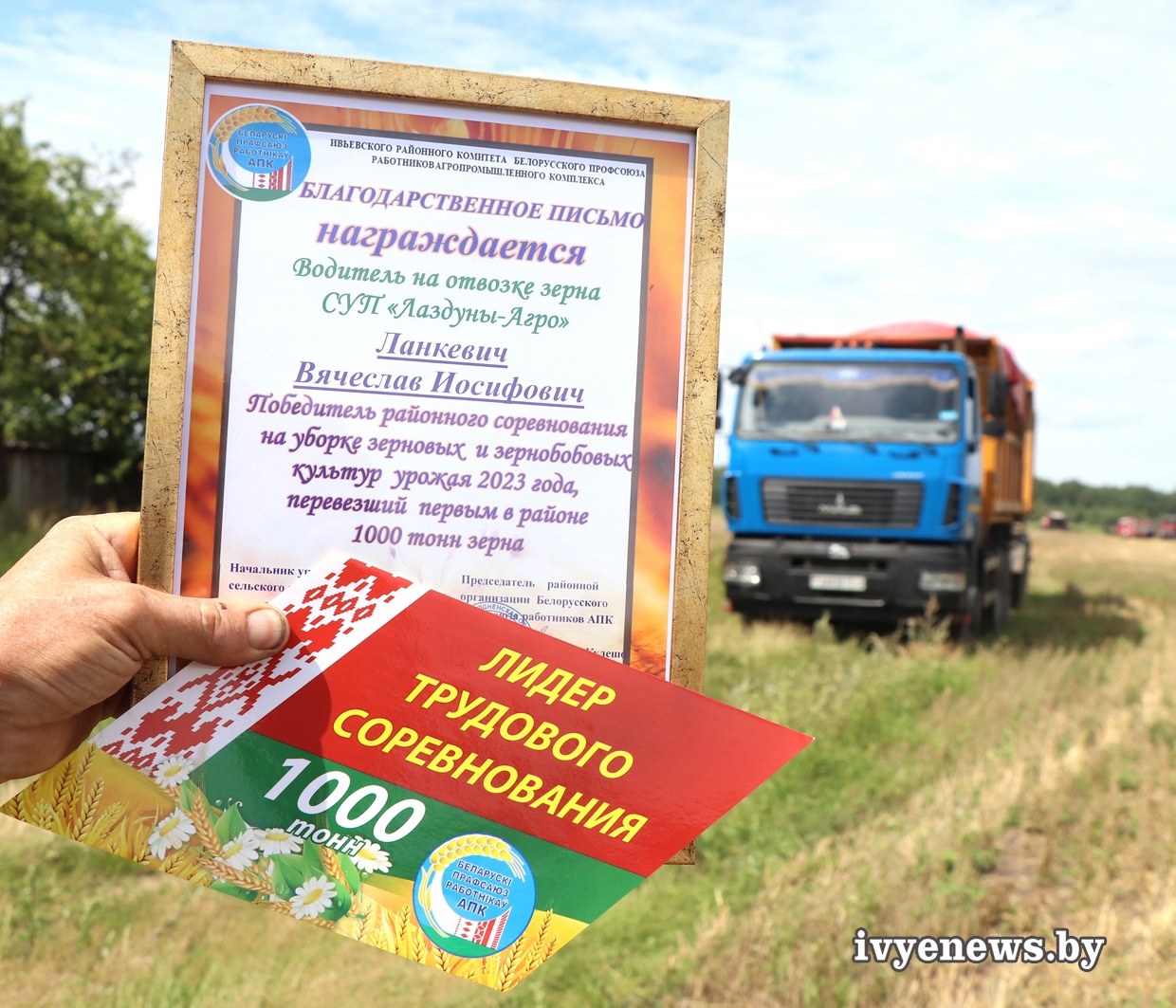 Водитель этого же хозяйства Василий Викентьевич Варанюк первым в районе перешагнул тысячный рубеж. В день вручения наград В.Варанюк первым в районе достиг (совместно с рапсом) результата более двух тысяч тонн перевезенного зерна.