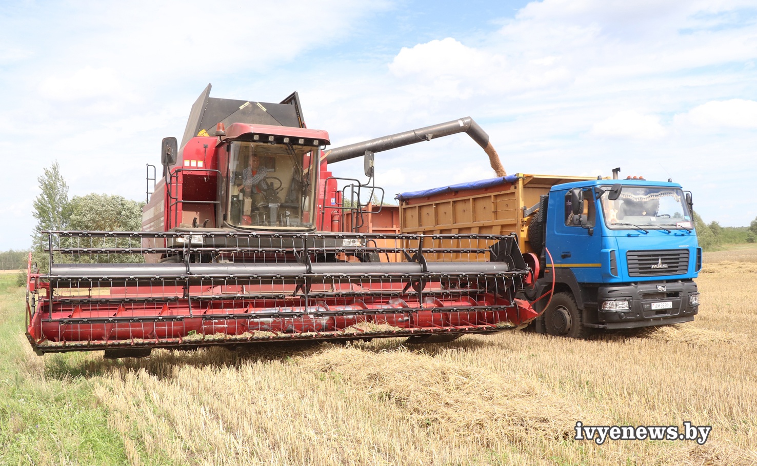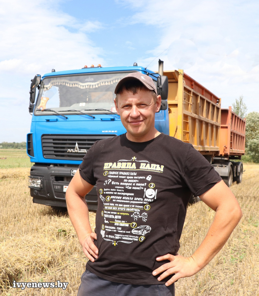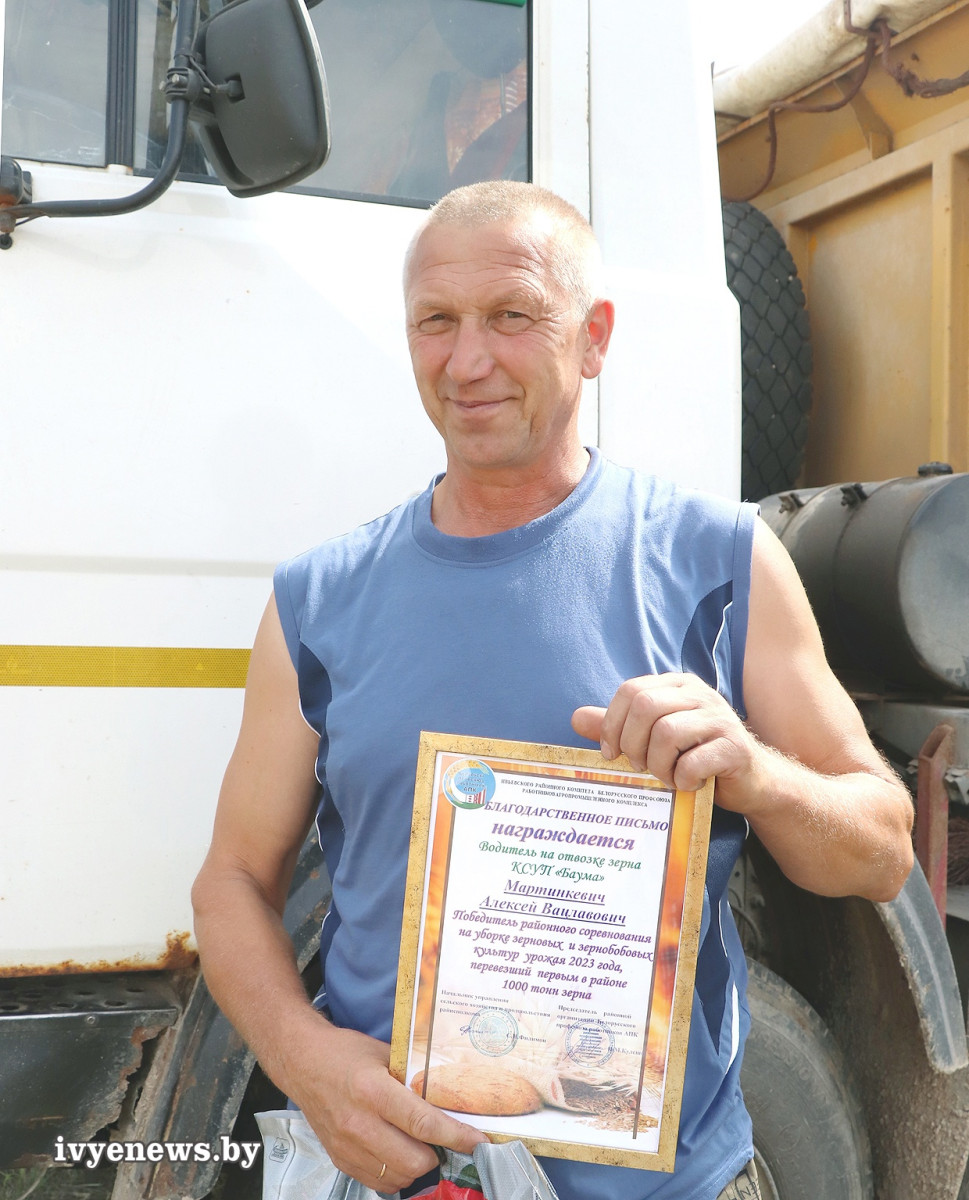 Когда идет уборка, на счету каждая солнечная минута. Жатва в сезоне 2023-го осложняется августовскими дождями. Но с каждым днем растет количество заготовленного зерна, растет в объеме суммарный ивьевский каравай. Лучшего результата в перевозке зерна (без рапса) добился водитель СУП «Лаздуны-Агро» Вячеслав Иосифович Ланкевич.