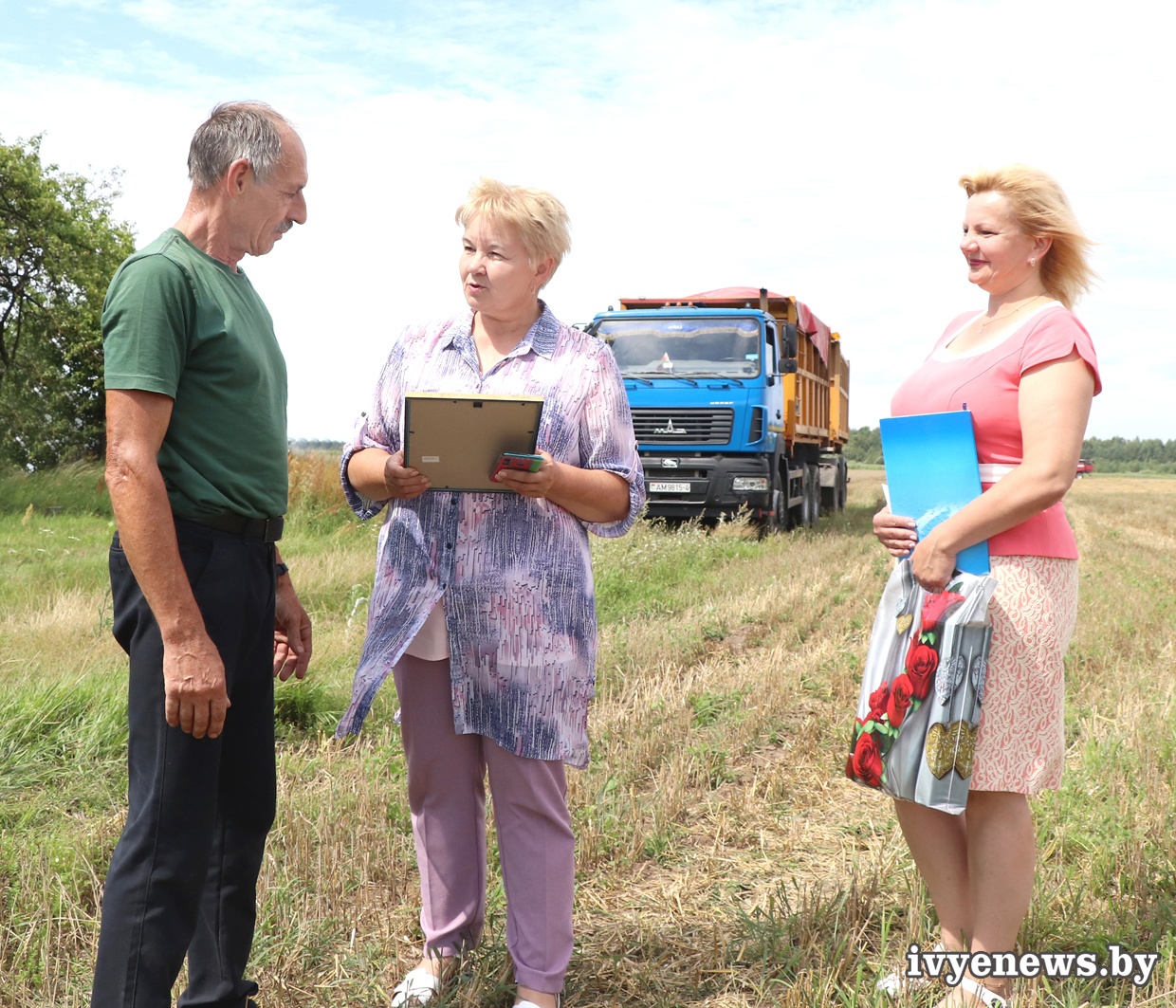 Первых победителей районного соревнования среди водителей на уборке зерновых и зернобобовых культур урожая 2023 года (по состоянию на 2 августа) в районе чествовали прямо на рабочих местах. Ценные подарки и благодарственные письма вручили водителям-тысячникам уборочной 2023 года первый заместитель председателя Ивьевского райисполкома, начальник управления сельского хозяйства и продовольствия Светлана Николаевна Филимон, председатель райкома профсоюза работников АПК Инесса Михайловна Кулешо.