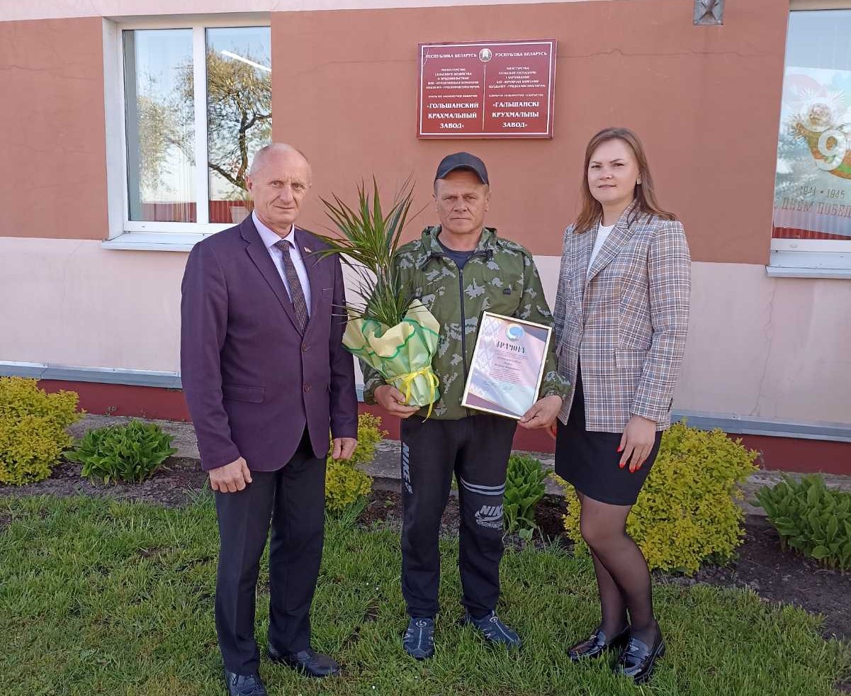 ГРАМОТОЙ Ошмянского районного комитета Белорусского профессионального союза работников агропромышленного комплекса за многолетний добросовестный труд, высокий профессионализм, активное участие в профсоюзной жизни коллектива награжден Мордас Виктор Викторович, тракторист открытого акционерного общества «Гольшанский крахмальный завод».
