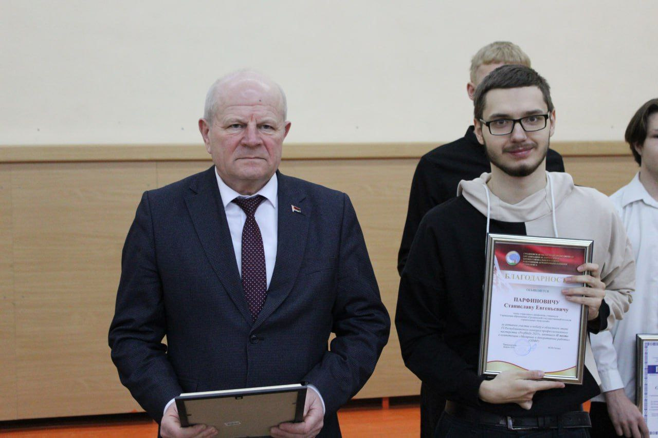 Торжественной линейке УО "Гродненский государственный колледж строительных технологий" наградил учащихся-победителей областного этапа VI Республиканского конкурса