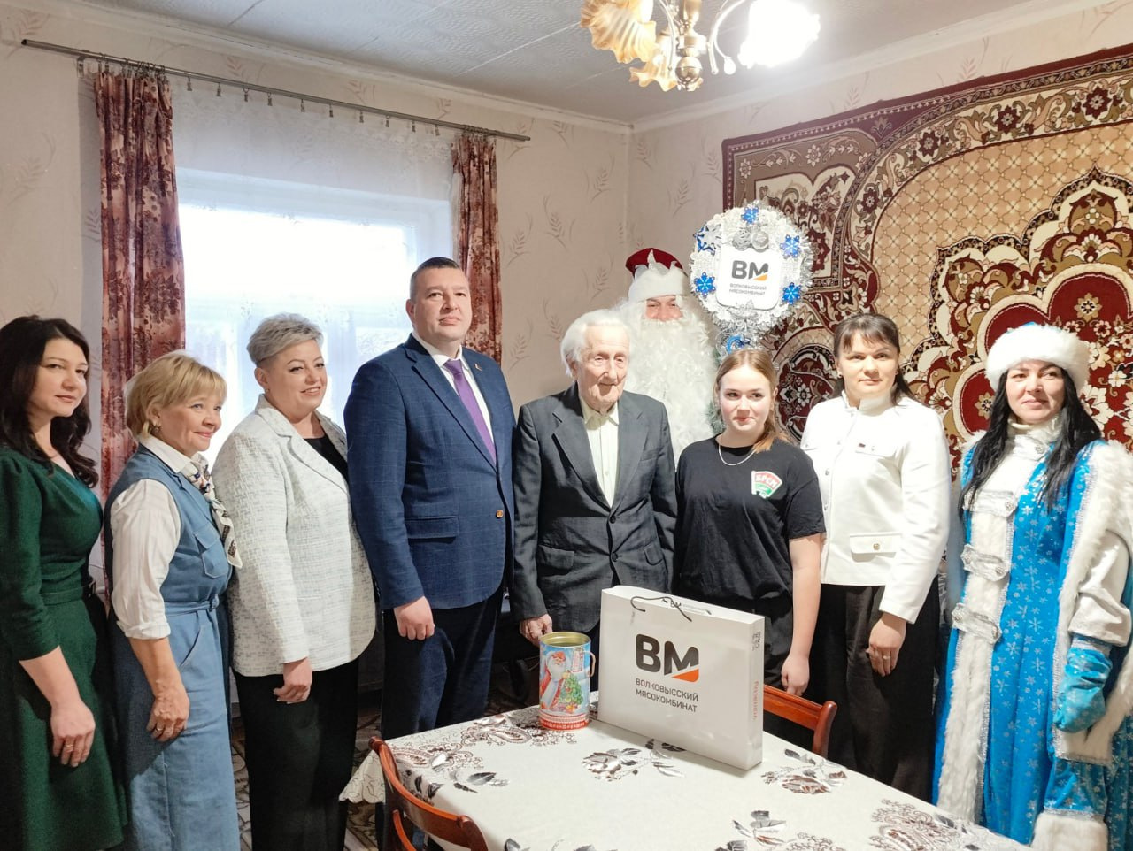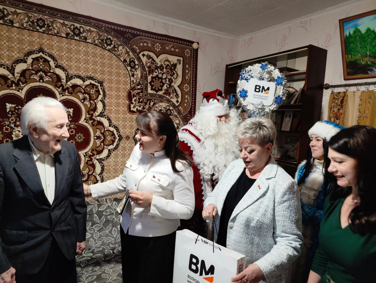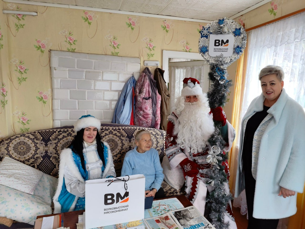 Накануне Нового года и Рождественских праздников в гости к ветеранам ВОВ выехали генеральный директор ОАО "Волковысский мясокомбинат" Елена Анатольевна Третьяк, заместитель генерального директора по идеологической работе Татьяна Геннадьевна Лосева, председатель профкома ОАО "Волковысский мясокомбинат" Оксана Данилова, Дед Мороз со Снегурочкой, а также представители Волковысского РИК, районный совет ветеранов, сотрудники социальной службы. Поздравили участников ВОВ, узников с наступающими новогодними праздниками, пожелали крепкого здоровья, благополучия и вручили новогодние подарки.