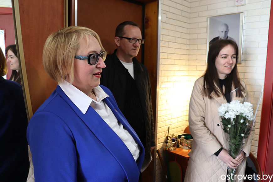 За некалькі дзён да знакавага для беларусаў дня – 9 Мая – жанчын павіншавалі старшыня райкама прафсаюза работнікаў АПК Юрый Адула і галоўны бухгалтар Марыя Станкевіч, старшыня райкама прафсаюза работнікаў адукацыі і навукі і прафсаюзныя лідары СШ №2 Наталля Варабей і СШ №1 Алена Урбановіч.