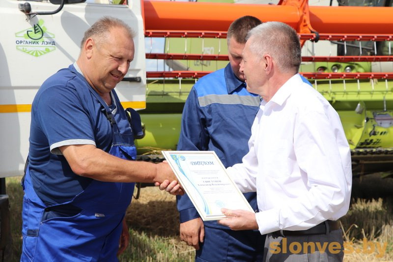 Очередная торжественная церемония награждения передовиков жатвы с участием председатель районного профсоюзного комитета работников АПК Александра Николаевича Зинченко, руководителя КСУП «Имени Дзержинского» Анатолия Казимировича Шейко и председателя первичной профсоюзной организации Натальи Ивановны Радионик состоялась на одном из полей сельхозпредприятия. Еще до начала уборочной никто не сомневался, что команда комбайнеров в составе Василия Михайловича Макарчука и Александра Антоновича Ласевича будет лидировать. Профессионализм тружеников, отличное понимание в команде и надежная новая техника (GS 2124) давали повод так думать. Две тысячи тонн зерна и рапса они отправили «в закрома» хозяйства и заслужили благодарность от районного профсоюзного комитета и руководства сельхозпредприятия.