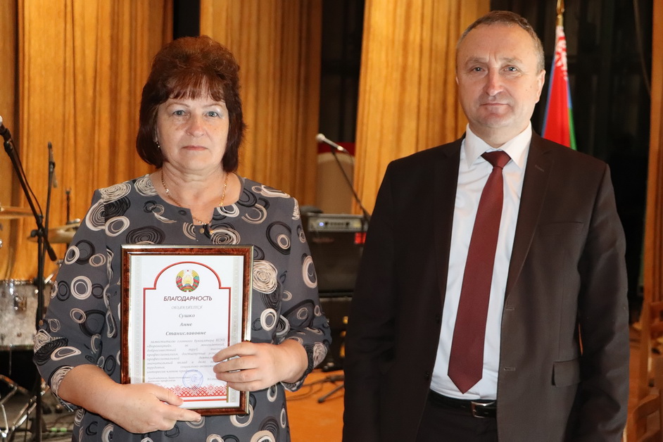 Председатель райкома профсоюза работников АПК Владимир Онищик объявил Благодарность профсоюзным активистам Антону Иодковскому и Анне Сушко.