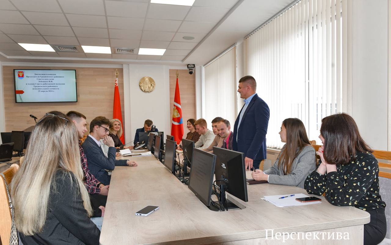 25 апреля работающая молодежь, члены первичных профсоюзных организаций, входящих в состав Гродненской районной профсоюзной организации Белорусского профсоюза работников АПК приняли участие в заседании Совета работающей молодежи Гродненского района в формате диалоговой площадки с участием председателя Гродненского районного Совета депутатов Лебецким Игорем Владимировичем.