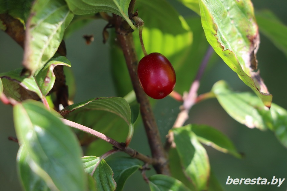 Кстати, на кизиле зреет уже и одна ягодка.