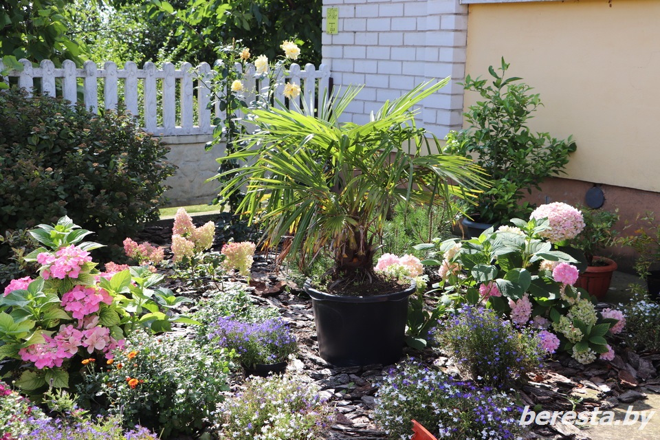 А еще у него во дворе есть даже две пальмы, их Владимир Сергеевич привез с отдыха еще в 2002 году, и вот уже более 20 лет они растут у него в кадках: летом – на улице, а на холодный период их переносят в дом.
