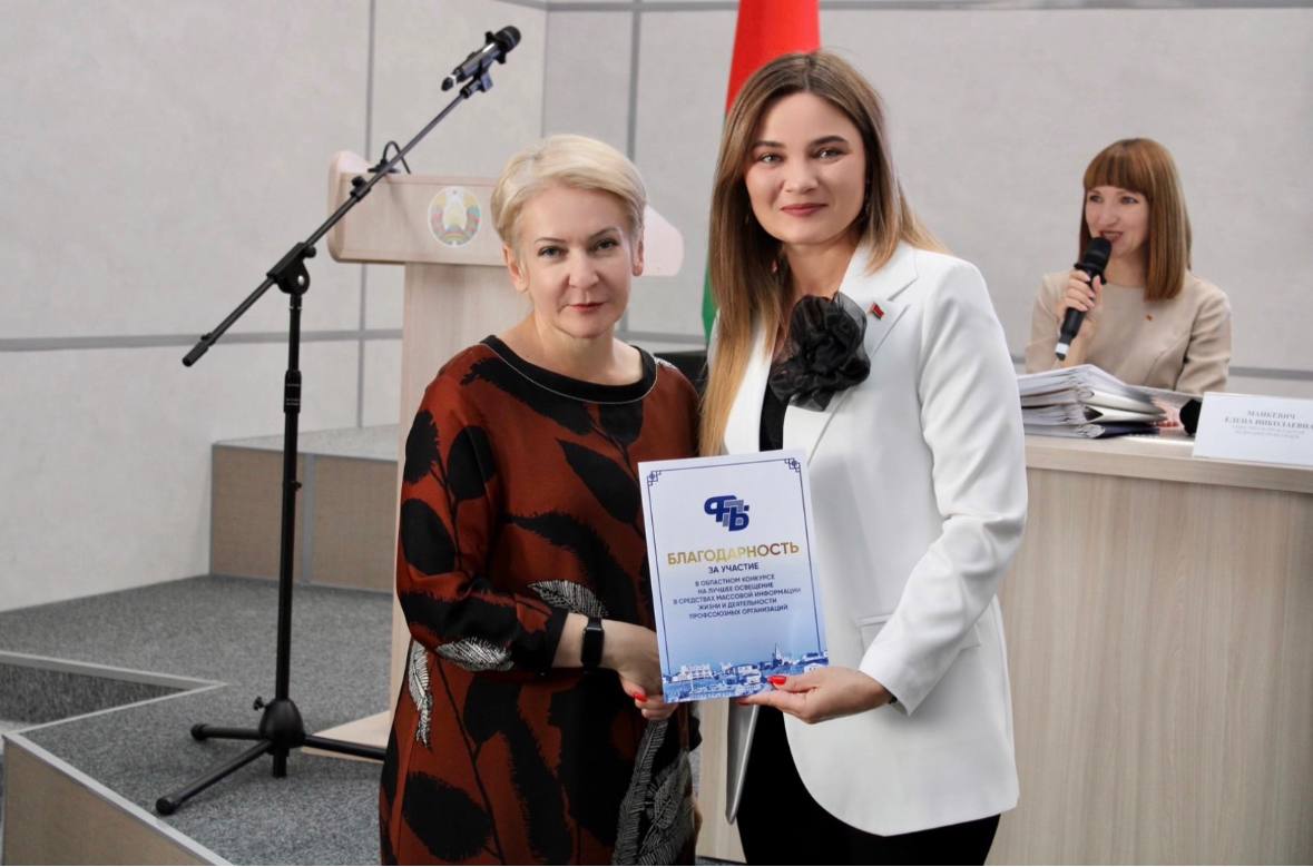 На Президиуме были рассмотрены и другие актуальные вопросы, а также состоялось подведение итогов областного конкурса на лучшее освещение в средствах массовой информации жизни и деятельности профсоюзных организаций. В конкурсе приняли участие профессионалы и авторы-любители. Всего на конкурс поступило 598 материалов. Среди 12 лучших - работа главного специалиста Гродненской областной профсоюзной организации Белорусского профсоюза работников АПК. Благодарность Гродненского областного объединения профсоюзов Татьяне Кот вручила заместитель председателя Федерации профсоюзов Беларуси Елена Манкевич.