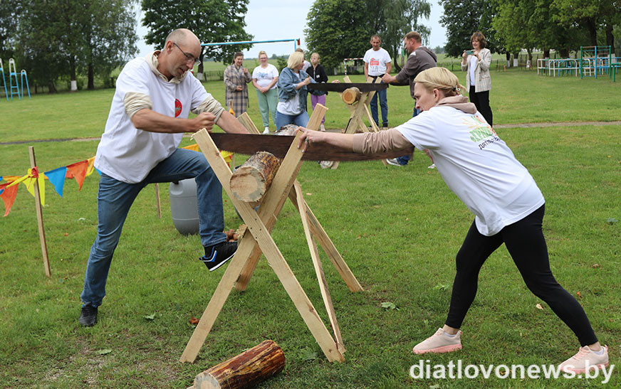 Аднак вясковыя жыхары павінны яшчэ хутка і ўмела спраўляцца з бытавымі справамі, таму ад словаў перайшлі да рэальнага задання – сельскай спартыўнай эстафеты, дзе дружна насілі ваду і збіралі бульбу. Сур’ёзным выпрабаваннем стаў конкурс “Дрывасек”, бо дарослым неабходна было распілаваць палена двухручнай пілой, насекчы і скласці дровы. Затым разам з дзецьмі прыступілі да назапашвання на зіму садавіны.