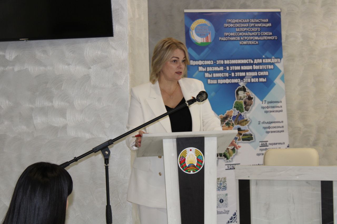 Участие в расширенном заседании президиума приняла главный правовой инспектор труда Гродненского областного объединения профсоюзов Инна Владимировна Мельникова