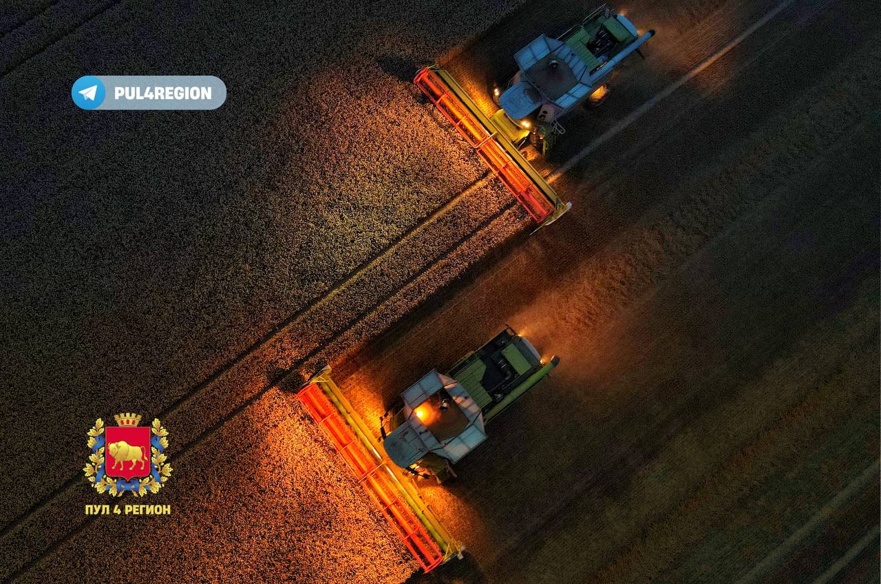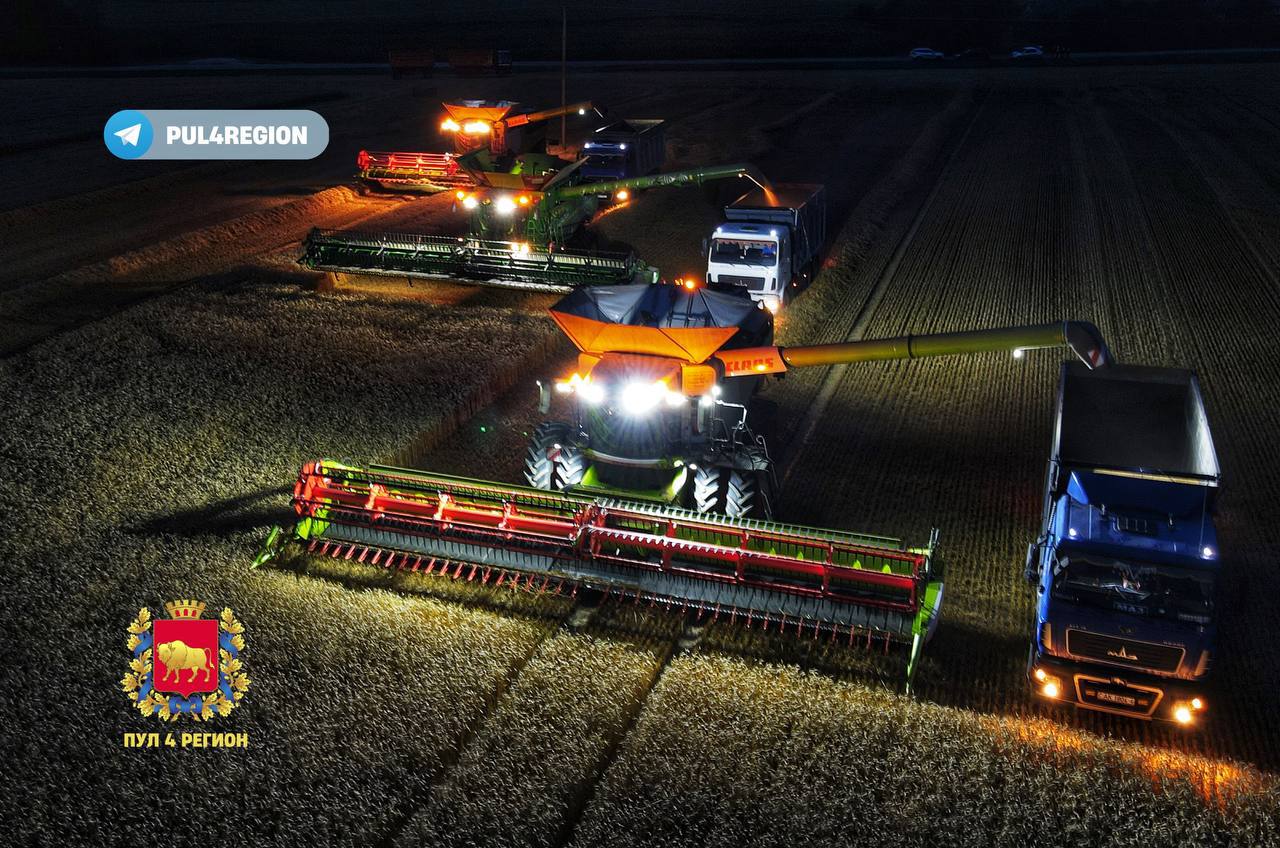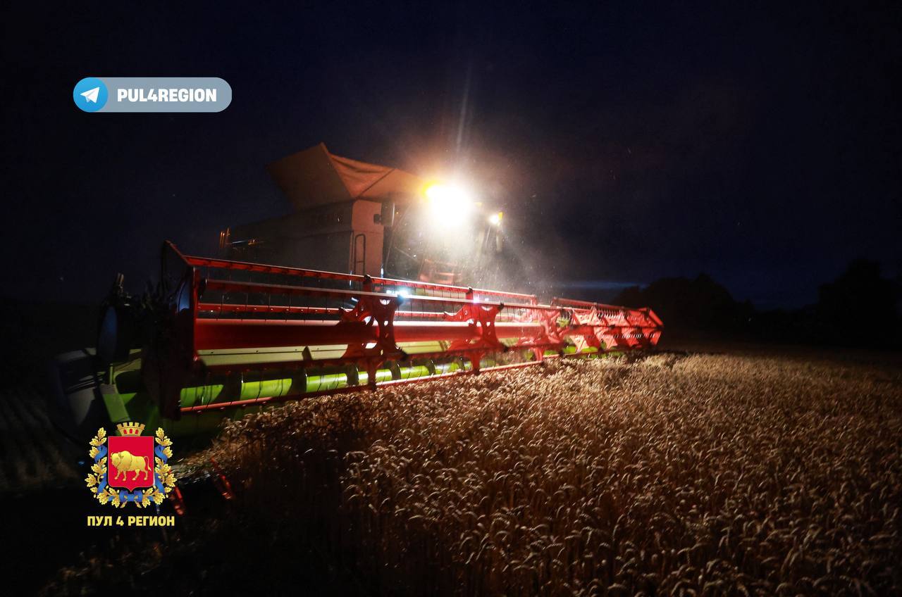 Как ночью идет уборка озимой пшеницы в СПК имени Кремко