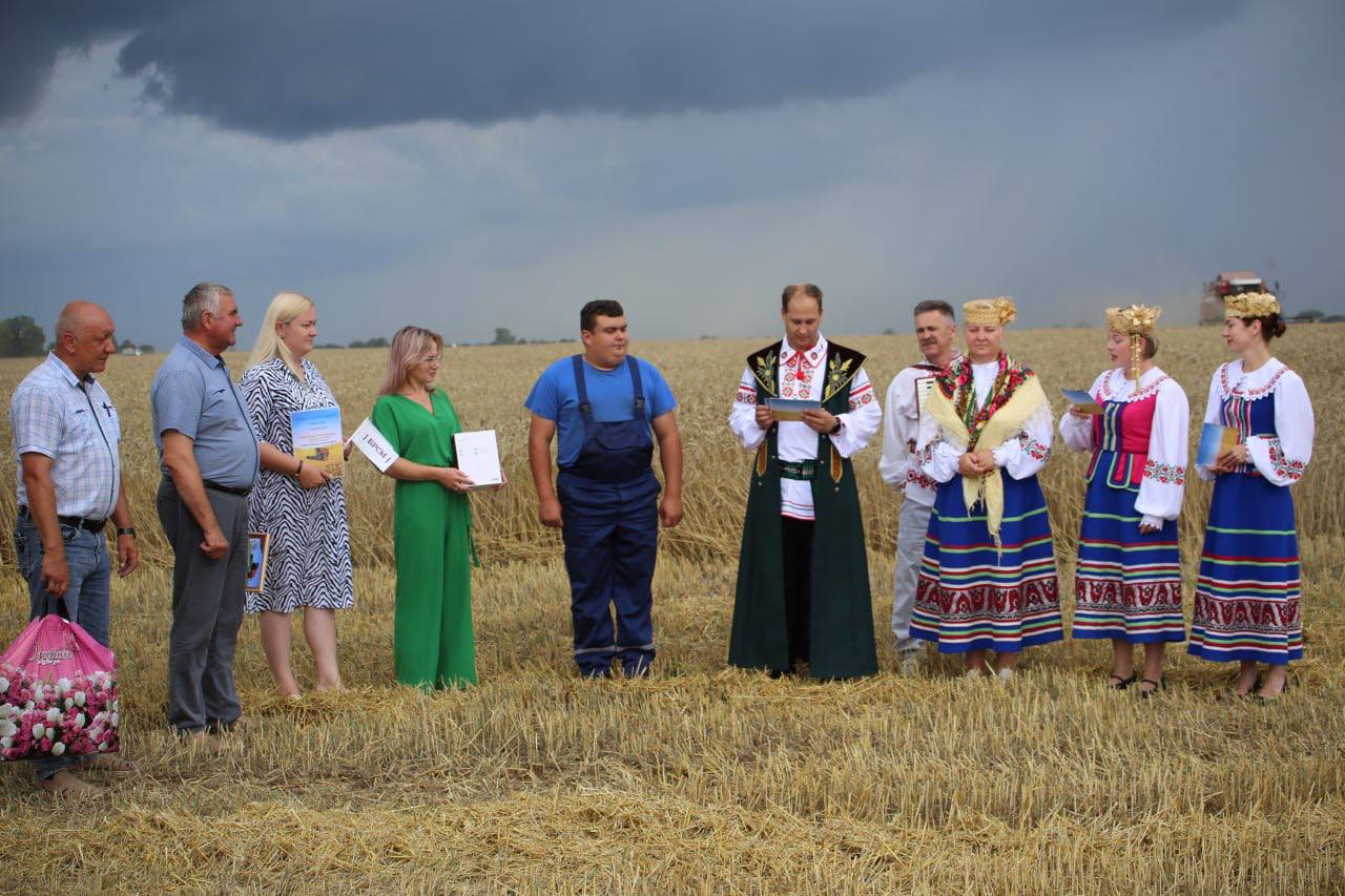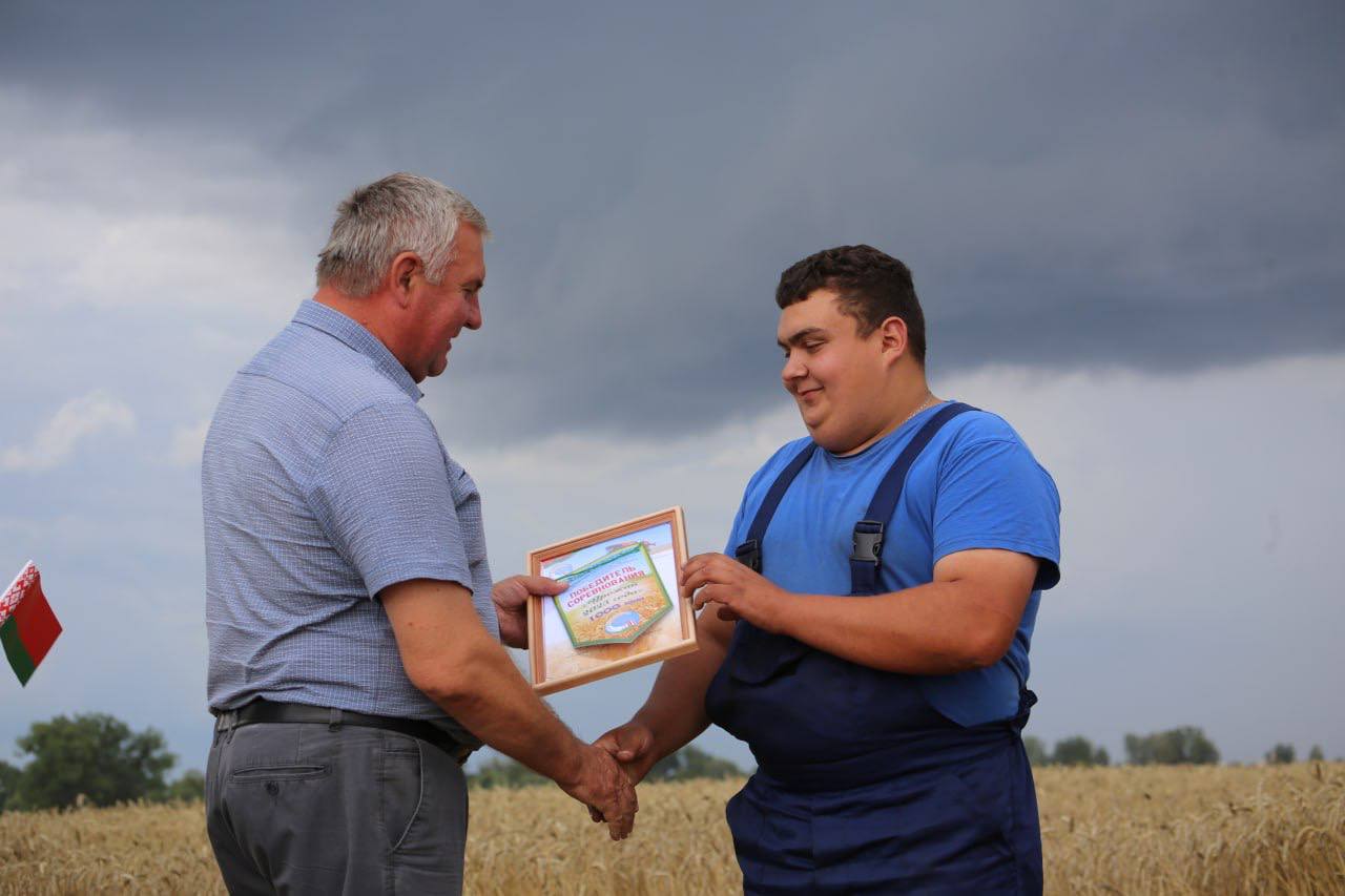Поздравить экипаж приехали прямо в поле, где убирали пшеницу первый секретарь БРСМ Новогрудского р-на Анна Антоненко, председатель райкома профсоюзов работников АПК Владимир Батурля и директор ОАО "Щорсы" Николай Иванчик пожелали молодому экипажу погоды в поле без поломок и с хорошим настроением провести уборочную компанию.