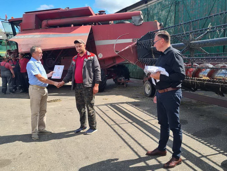В этот день награды от председателя Берестовицкой районной организации Белорусского профсоюза работников агропромышленного комплекса Владимира Онищика получили не только эти лидеры уборочной компании, но и те комбайнеры и водители, которые добились заветной тысячи тонн обмолоченного или перевезенного зерна. Их, кстати, на сегодняшний день в районе уже более 60: этот рубеж преодолели 28 экипажей комбайнеров и 34 водителя, занятых на отвозке зерна.