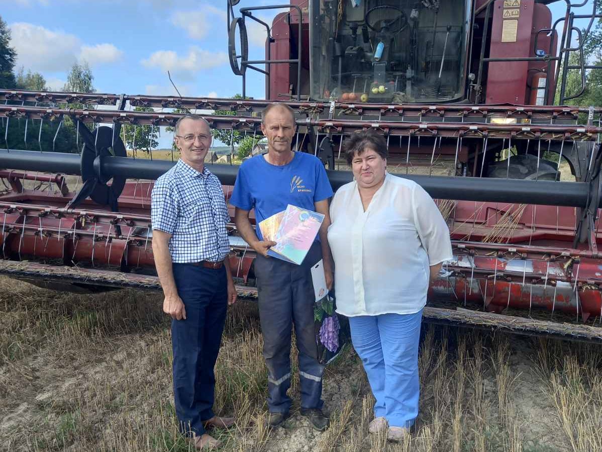 Поздравить передовиков жатвы в поле приехали КРЫШТОПИК Виталий Чеславович, главный технический инспектор труда Гродненского областного комитета профсоюза работников АПК и председатель Ошмянского районного комитета профсоюза работников АПК ТУРЛАЙ Раиса Николаевна.