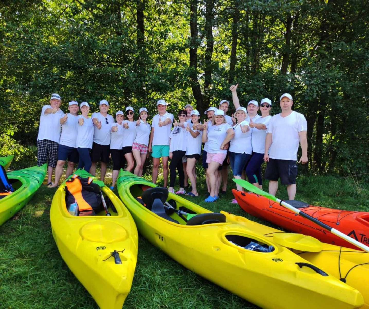 Как только наступает теплый сезон, байдарки пользуются спросом среди наших работников. Они были приобретены предприятием в 2020 году. Каждое подразделение имеет возможность собрать команду и организовать сплав. Профсоюзный комитет выделяет средства для питания участников. Не важно, кто плывет – работники колбасного или мясожирового цеха, ветврачи или коммерческая служба, спортсмены или администрация. Главное, что люди интересно проводят время, с пользой для здоровья. Сплав – это дружеская атмосфера, веселое настроение и конечно же корпоративный дух!