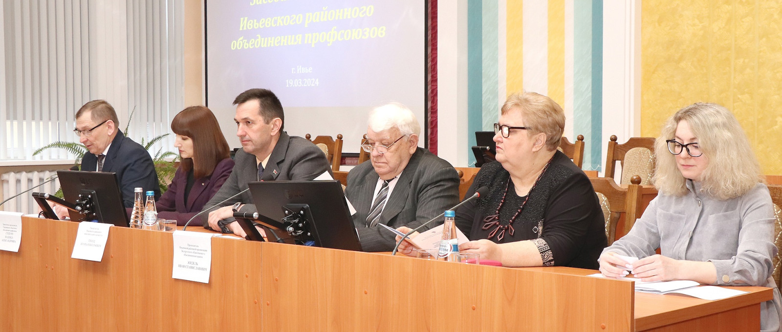 В райисполкоме состоялось заседание Совета Ивьевского районного объединения профсоюзов. В работе форума приняли участие председатель Ивьевского районного исполнительного комитета Игорь Генец, заместитель председателя Гродненского областного объединения профсоюзов Надежда Степуро, председатель Ивьевской районной организации Белорусского общественного объединения ветеранов Иван Жидель.