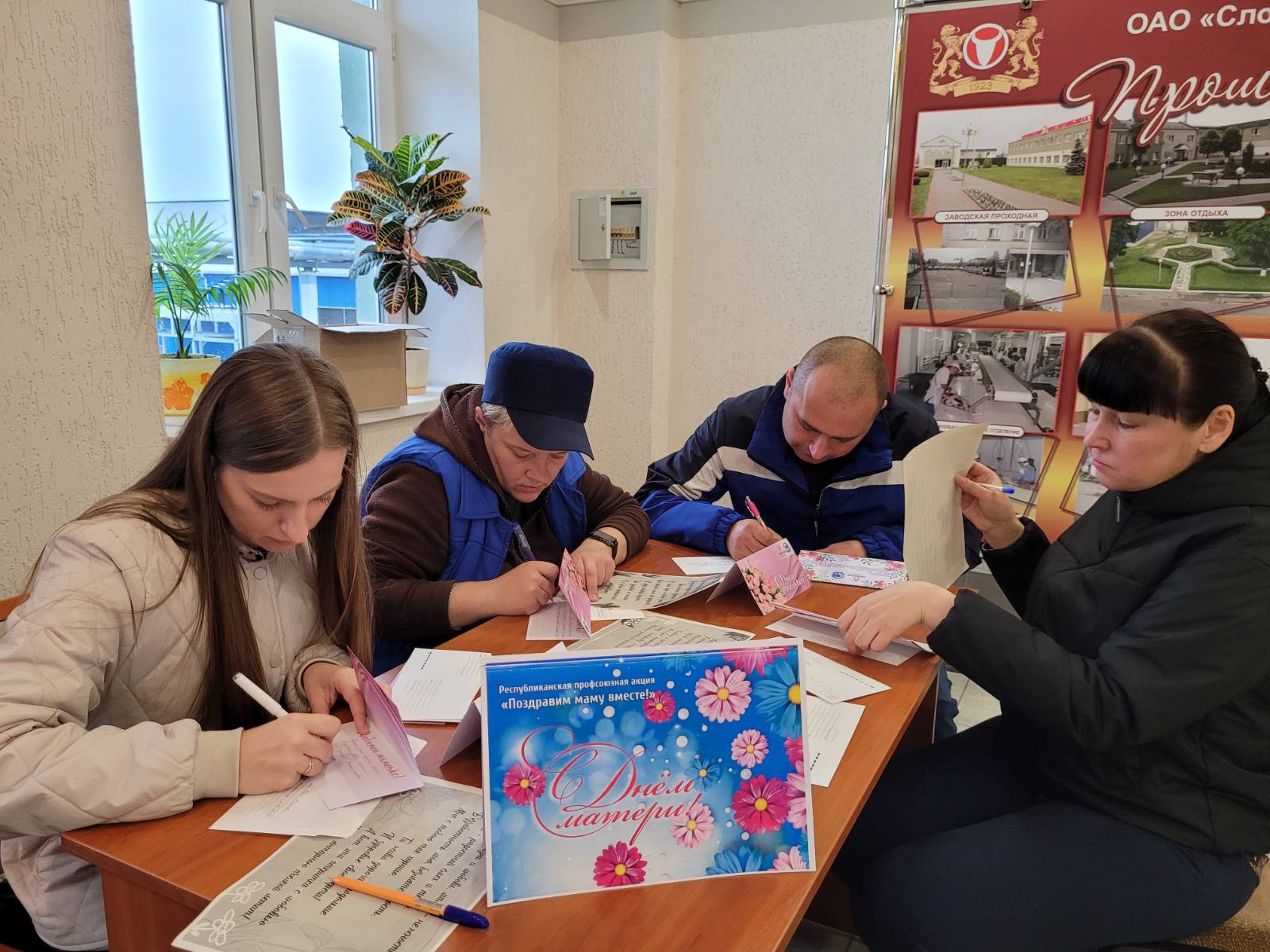 Трепетный праздник и люди с удовольствием приходят, чтобы поздравить своих мам с праздником. А первичная профсоюзная организация ОАО "Слонимский мясокомбинат" позаботилась о красочных открытках, на которых можно написать самые важные и главные слова своей маме и отправить их совершенно бесплатно.