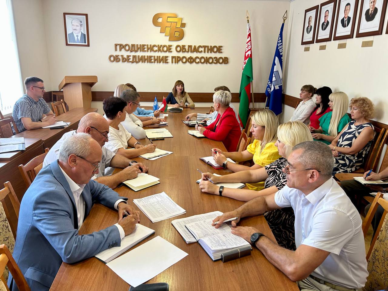 Председатель Гродненской областной профсоюзной организации Белорусского профсоюза работников агропромышленного комплекса Ромуальд Юровский принял участие в плановом совещании областного объединения профсоюзов с председателями областных организаций отраслевых профсоюзов.