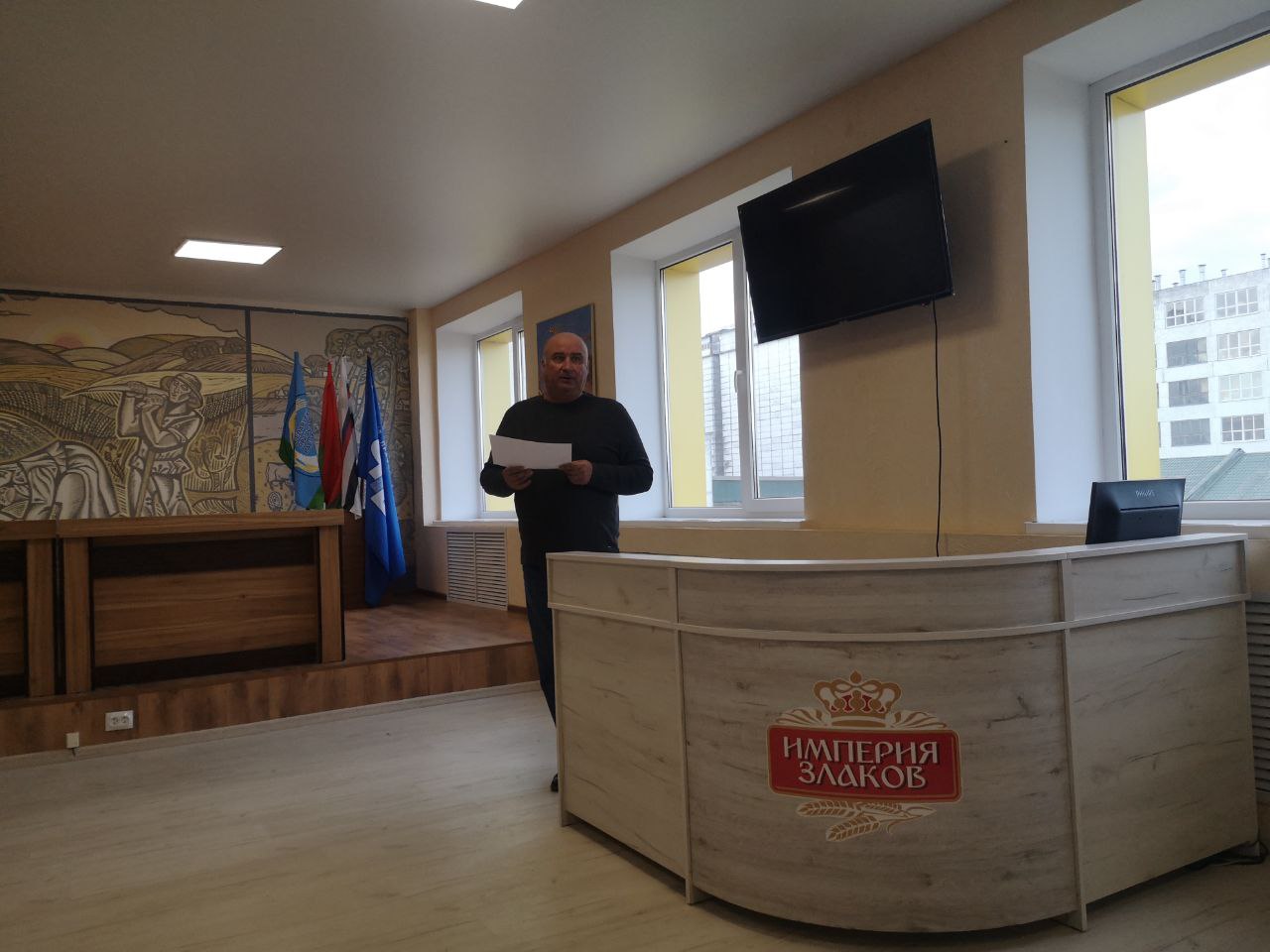 Заместитель директора по идеологической, кадровой работе и охранной деятельности Василий Геннадьевич Тихонович обратил внимание всех работающих на необходимость неукоснительного соблюдения трудовой, производственной и исполнительской дисциплины, обеспечения своей безопасности и безопасности тех, кто работает рядом.