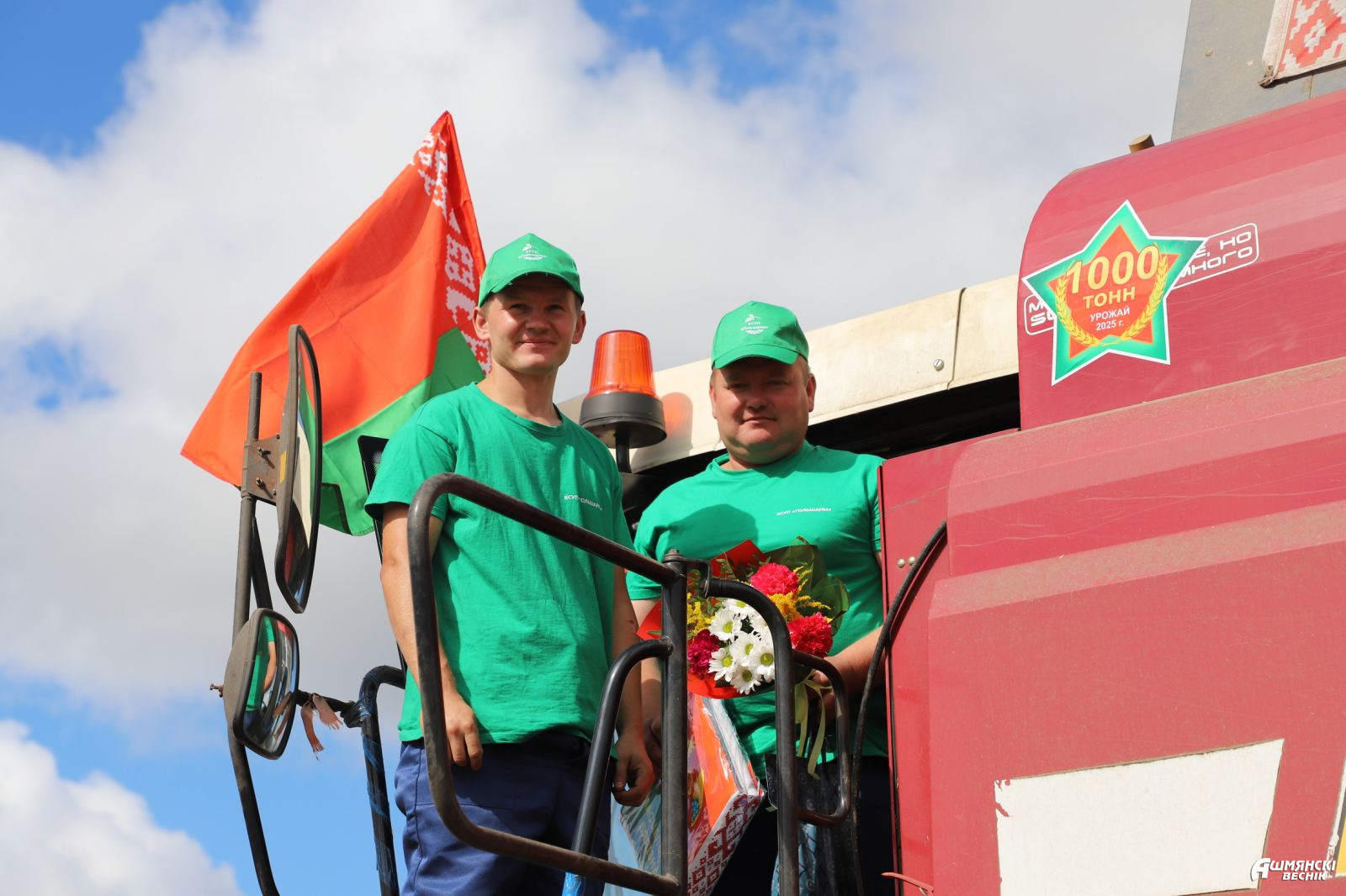 На этот раз насыщенный день парламентария начался в поле. Там сейчас самая горячая пора — аграрии спешат убрать хлебные нивы и пополнить закрома. Поблагодарить трудолюбивых сельчан вместе с депутатом Палаты представителей приехали первый заместитель председателя Ошмянского райисполкома Андрей Янюк, председатель райкома профсоюза работников агропромышленного комплекса Раиса Турлай, директор КСУП «Гольшаны» Михаил Скаржинский и председатель первичной профсоюзной организации Кристина Пашковская. Поздравления с высокими результатами принимали комбайнеры, достигшие планки в 1000 тонн зерна. Среди них — экипаж Андрея Чаплинского и Александра Макаревича, а также водитель Олег Соболь, который перевез тысячу тонн зерна нового урожая. Помимо теплых слов, цветов и подарков, тружеников ждало музыкальное поздравление от работников культуры. Несколько задорных композиций — и аграрии снова ведут по полю свои мощные машины, ведь налившийся колос не терпит промедления