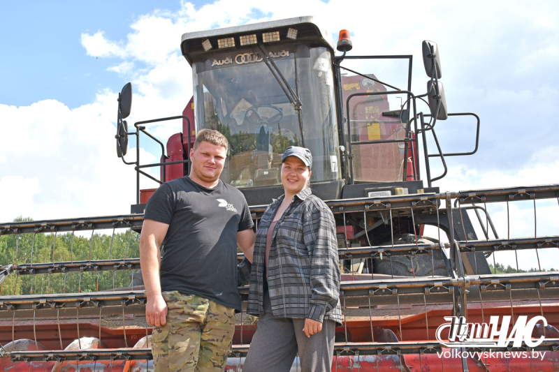Владислав пришел работать в РСКУП «Волковысское» в 2016 году. Начинал с помощника, а через год пошел учиться на механика в Жировичский техникум. И придя в «Волковысское» на отработку, сел за руль комбайна. Девушка отучилась на филолога, но любовь привела ее сюда, в помощницы к избраннику. Конечно, вставать в пять утра ей пока непривычно, но это пока.