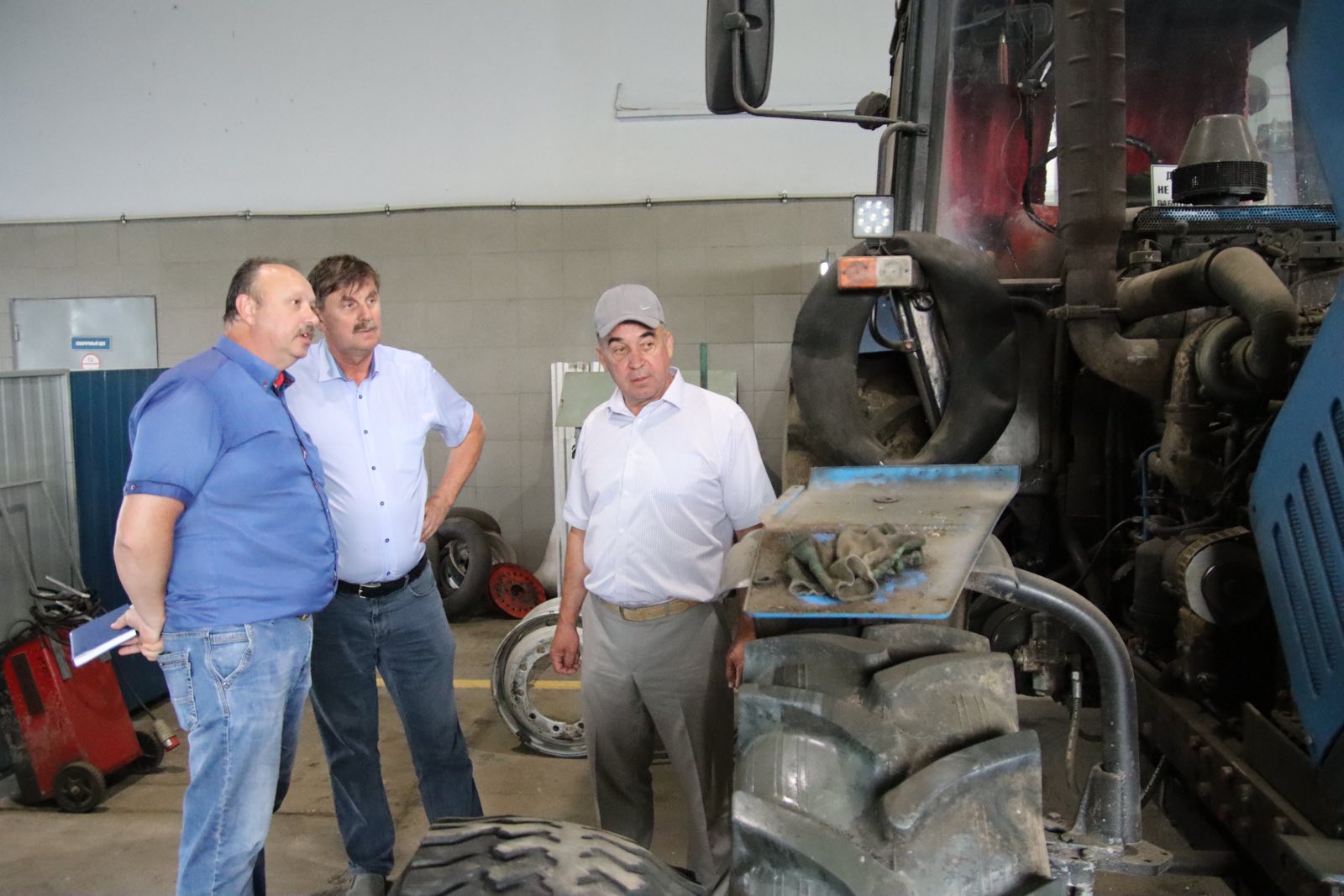 Павел Лапковский и Генрих Юревич также заехали на мехмастерские хозяйства и были впечатлены чистотой и порядком, царившими вокруг. Они убедились, что с работниками проведён необходимый инструктаж, и они обеспечены всем необходимым инструментарием для ремонтных работ различной сложности.