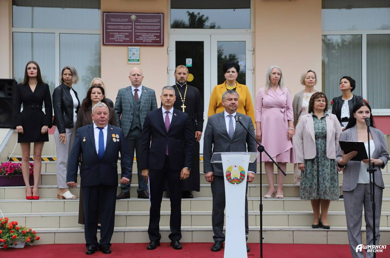 После торжественной линейки заместитель Премьер-министра заместитель Республики Беларусь вместе с председателем Ошмянского райисполкома Владиславом Гершгориным и директором колледжа Виктором Войшнаровичем посетили производственную базу учреждения — учебные мастерские, автотрактородром, автомобильный городок.