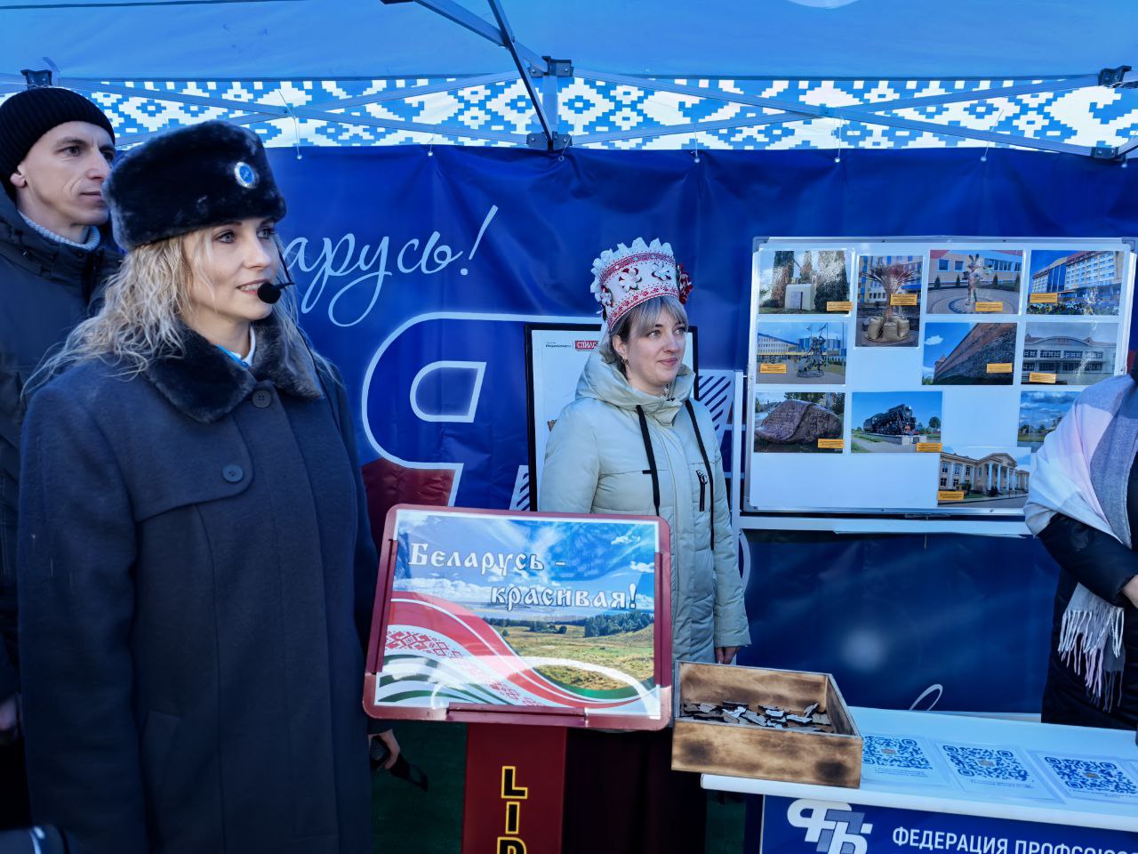 Во второй день «Марафона единства» в Лиде, 11 января, центром притяжения стала площадка перед ледовым дворцом «Путешествуем с профсоюзом по Беларуси».