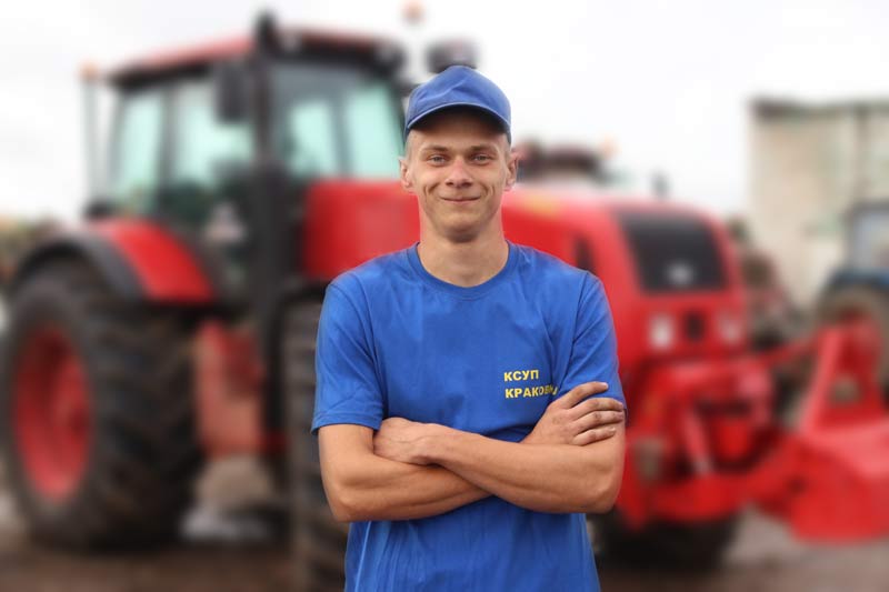 После окончания колледжа молодого человека ждало распределение. Сергей, получив специальность тракториста-машиниста, с нетерпением ждал момента, когда сможет самостоятельно приступить к работе. Специалист был распределен в КСУП «Краковка». Во время уборочной кампании он работает на зерноуборочном комбайне «Палессе GS12», а также за Сергеем закреплен трактор МТЗ-3022.