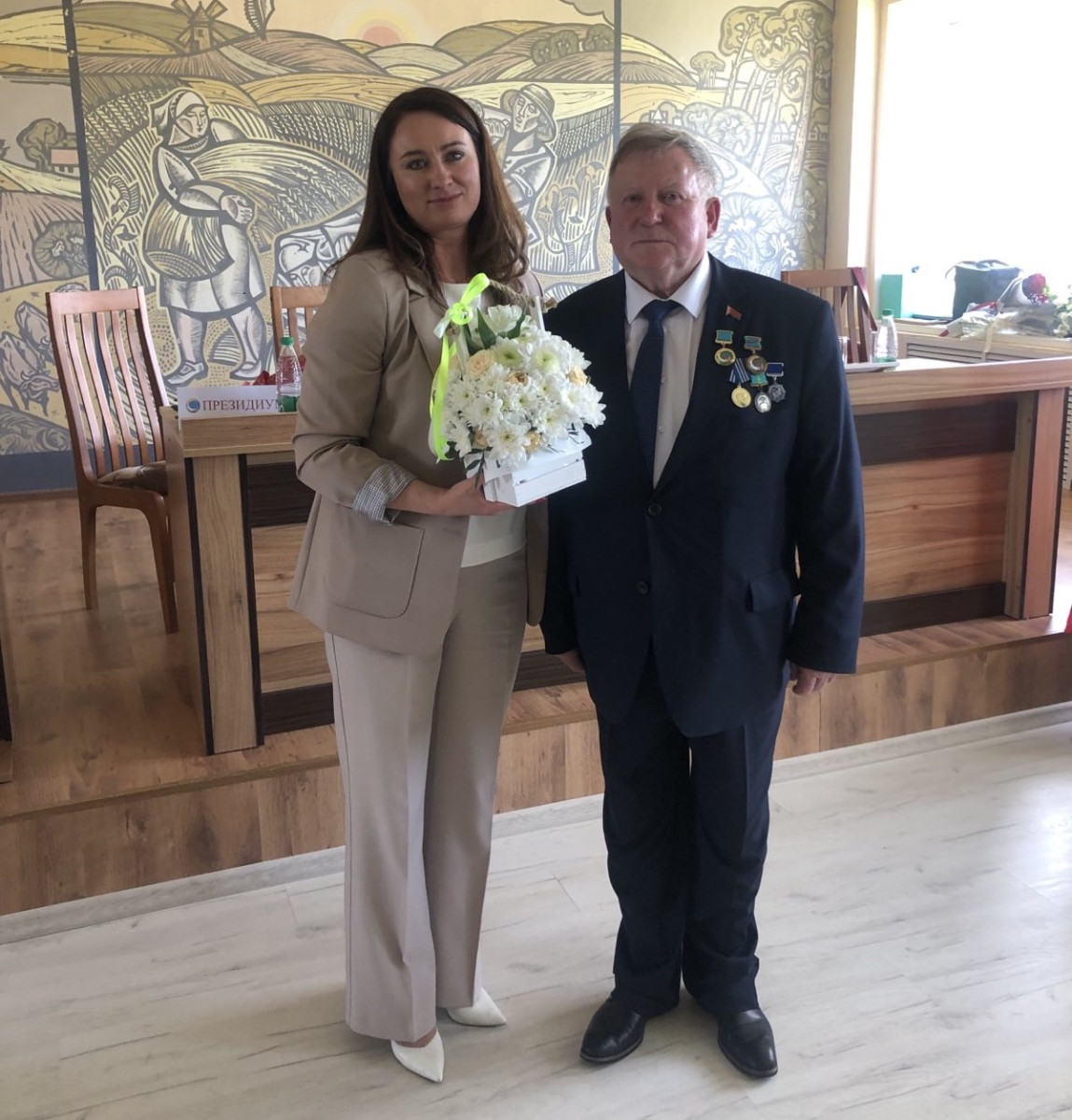 От имени районного исполнительного комитета слова благодарности высказала Виталию Ивашко заместитель председателя райисполкома Татьяна Щеберяко, вручила ему за многолетний добросовестный труд Благодарственное письмо и подарок. Много теплых слов услышал Виталий Иванович от своих коллег, которые возглавляют профсоюзы работников АПК в Лидском, Ивьевском, Ошмянском и Островецком районах, от представителей предприятий и сельхозорганизаций Сморгонщины.