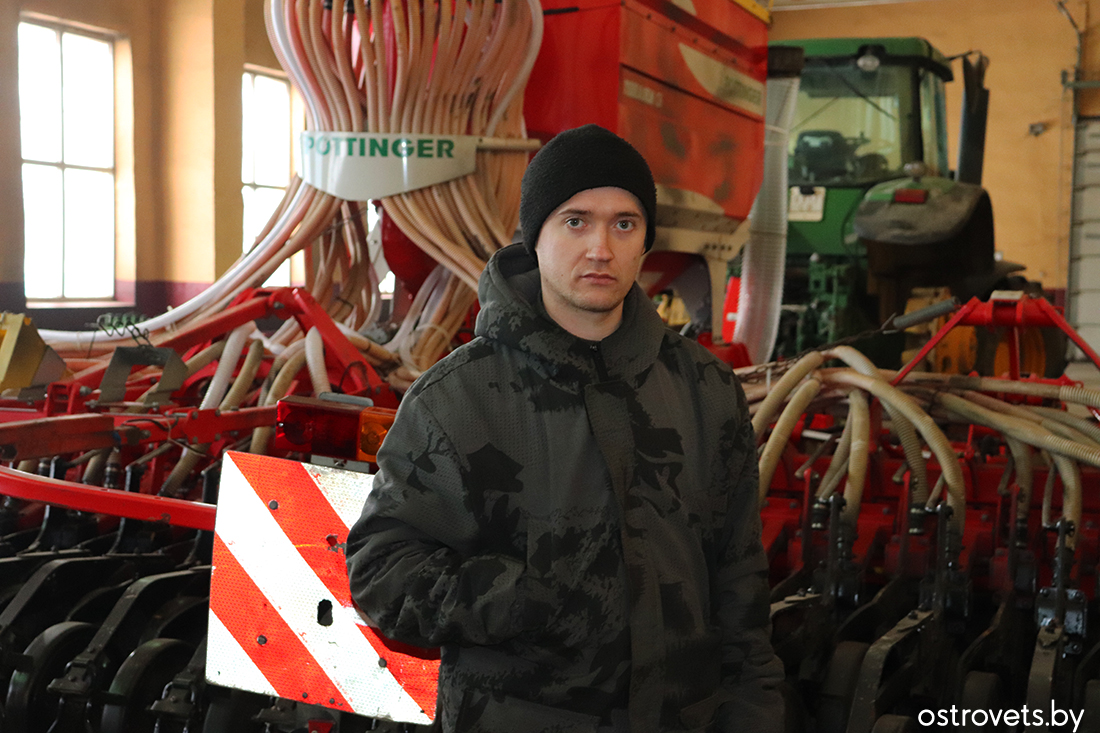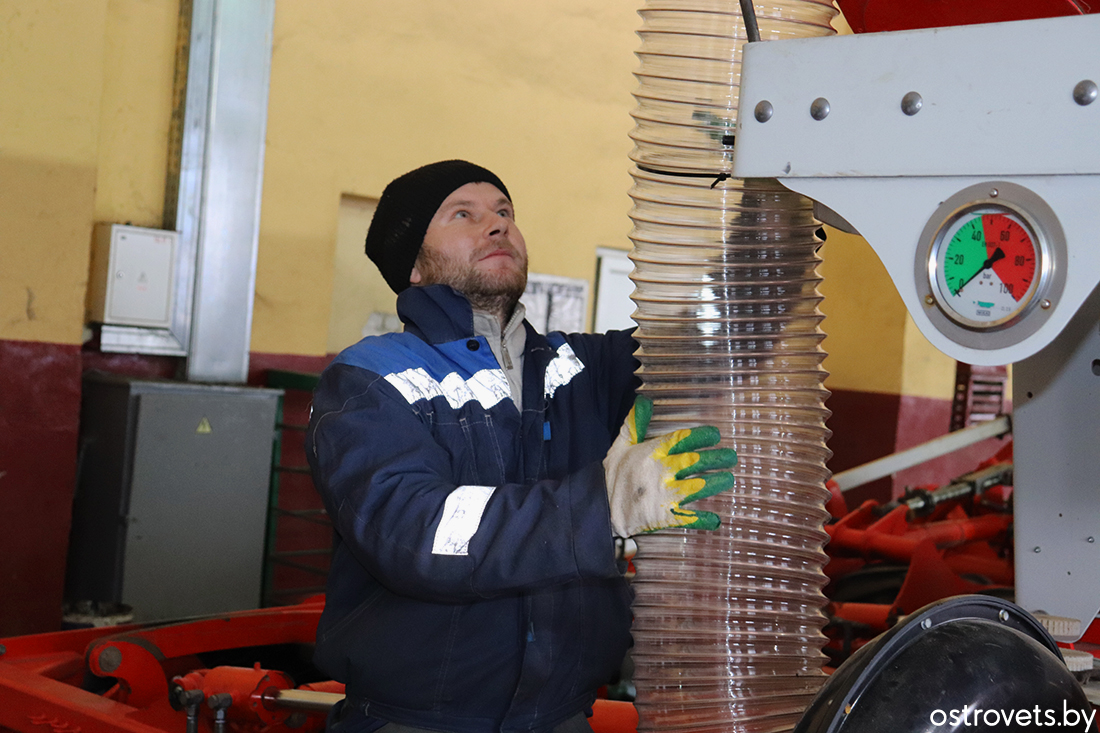 – «Джон-Дзір», як правіла, задзейнічаны на важных палявых работах, такіх як сяўба, культывацыя, ворыва. У той час як невялікія МТЗ выкарыстоўваюцца для перавозкі саломы і іншага, – патлумачыў малады чалавек. – У сеялцы замяніў усе расходнікі: дыскі, насенняпровады, манжэты, падшыпнікі, ступіцы. Любы механізатар пацвердзіць: каб тэхніка вясной у полі не ламалася, яе трэба старанна падрыхтаваць зімой. Моцна з рамонтам дапамог слесар Раман Пешкур.