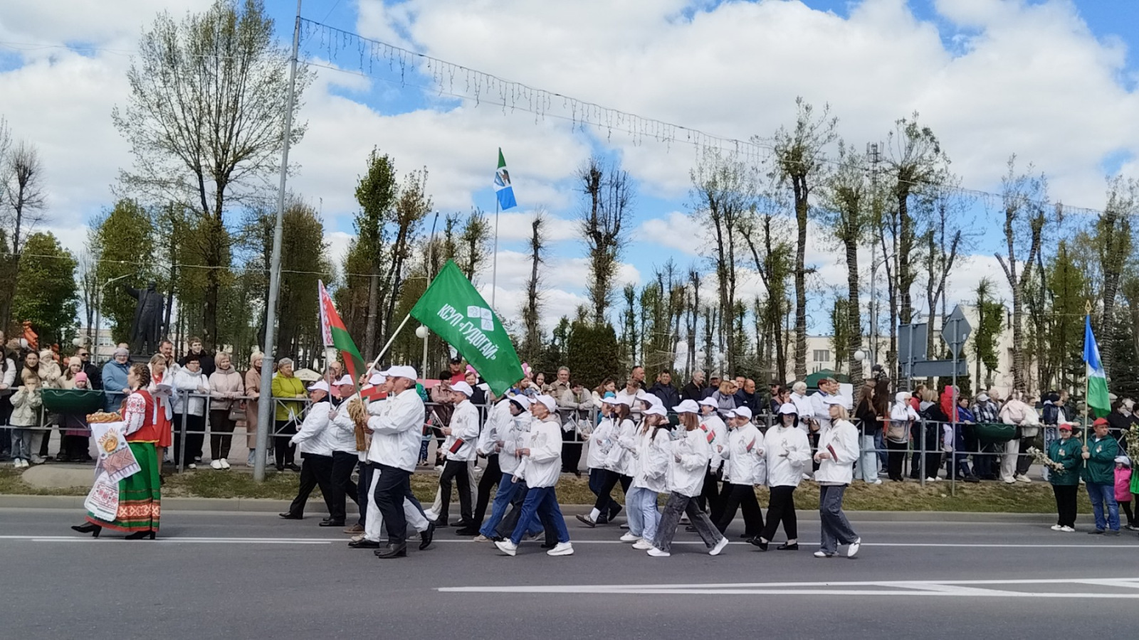 Шествие получилось по-настоящему масштабным: в нём приняли участие военизированные силовые структуры, предприятия, организации и учреждения Островецкого района. Особенно ярко выделялись сельскохозяйственные предприятия района—каждое представило свой коллектив в индивидуальном стиле, с оригинальными атрибутами, флагами и яркими костюмами. Их присутствие подчеркивало важность труда на родной земле и связь поколений, которые с любовью хранят память о героях.