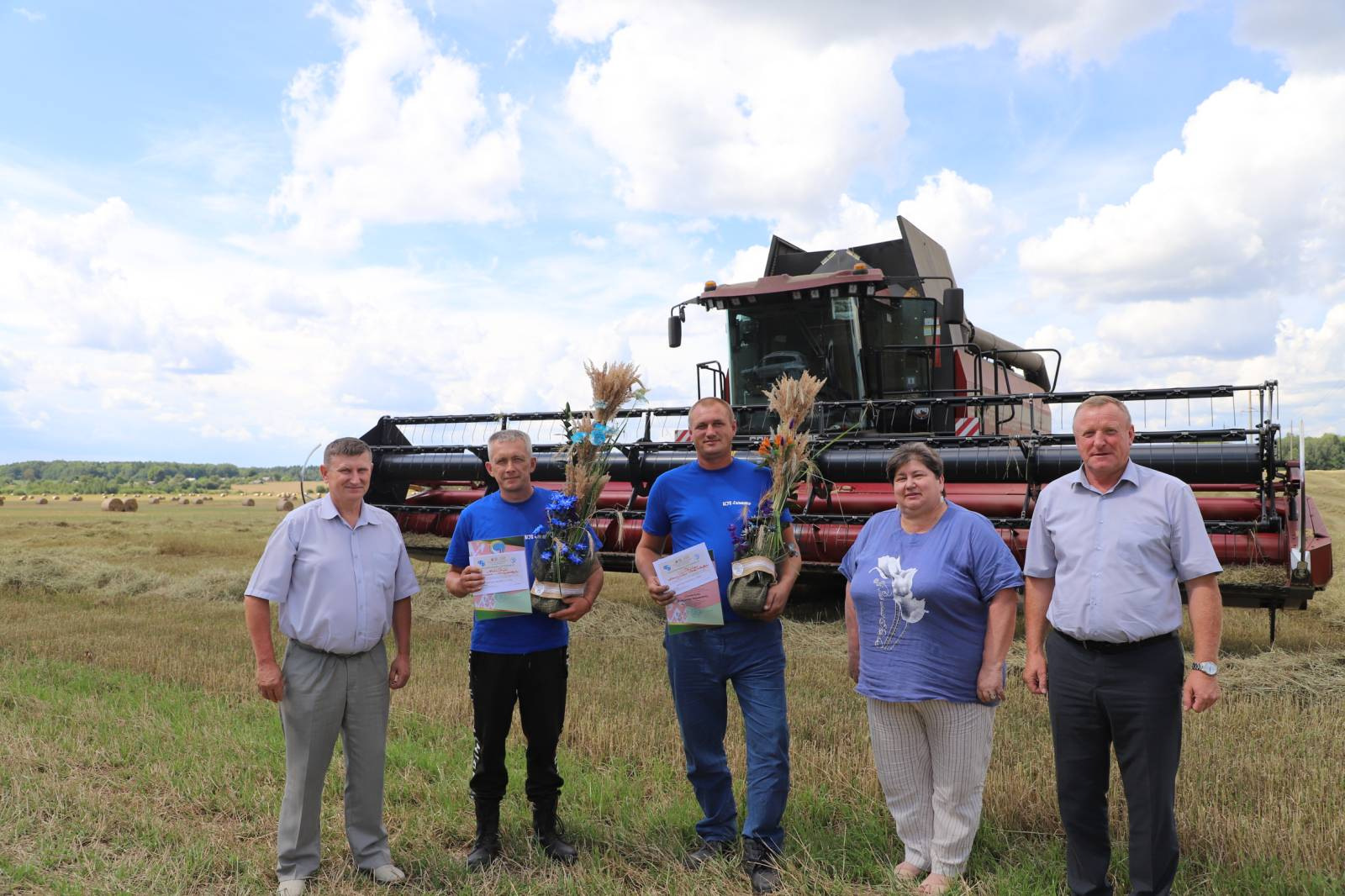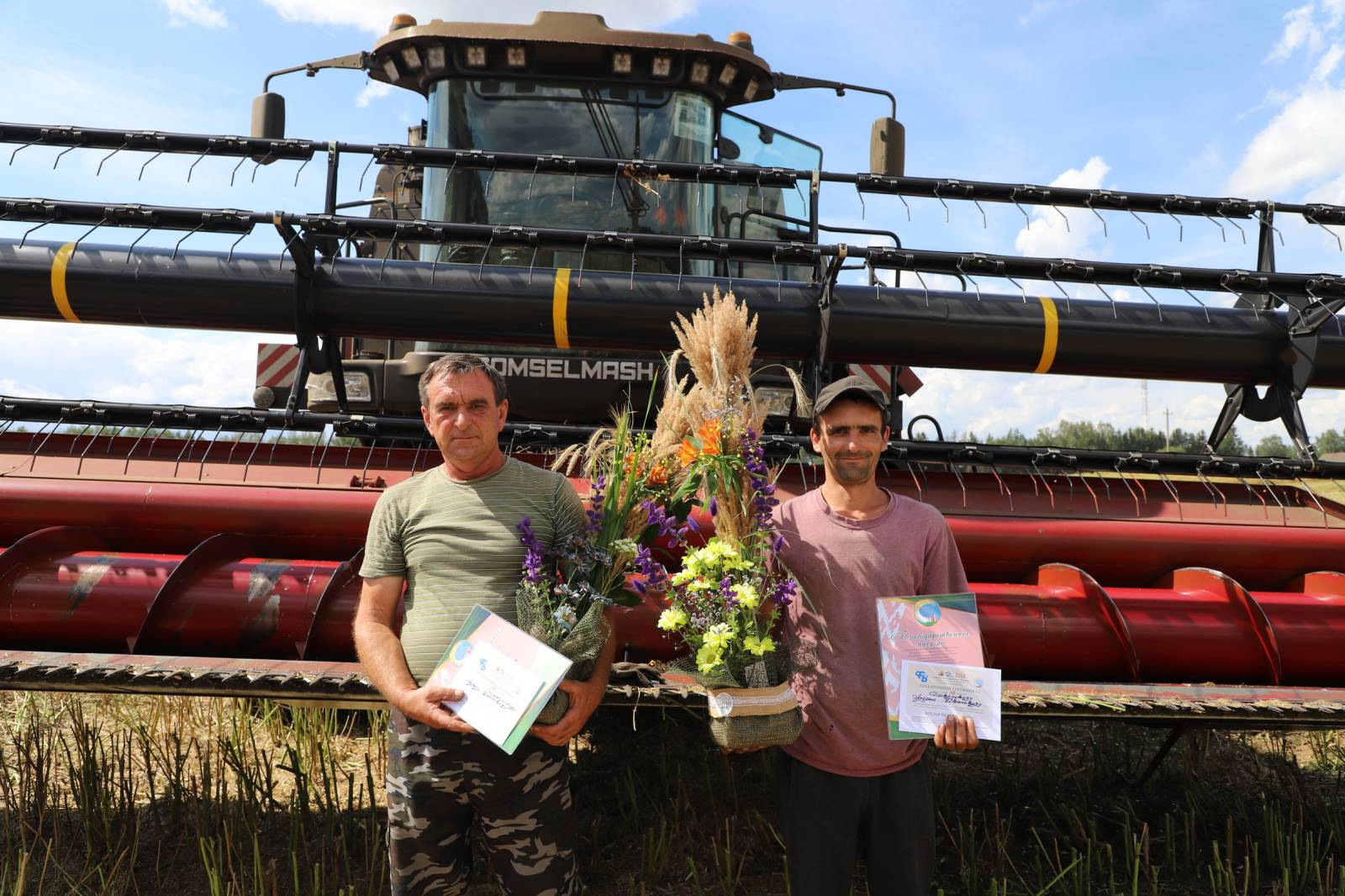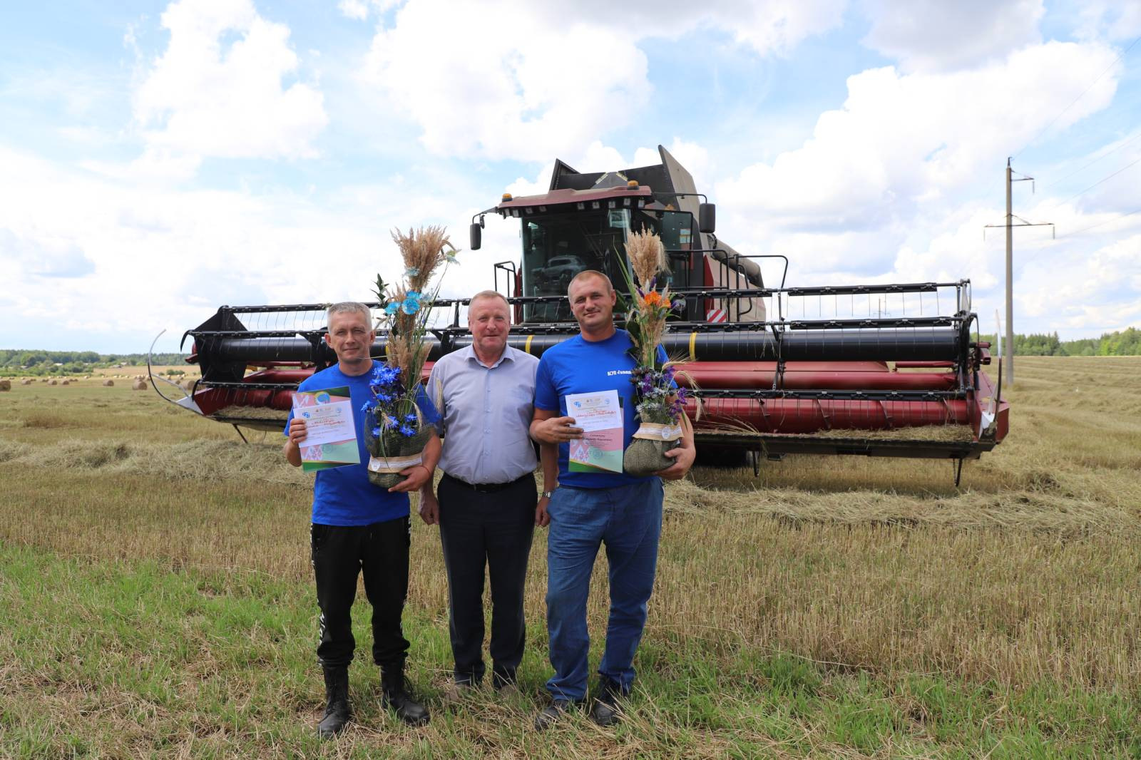 Традиционно прямо в поле, победителей соревнования по уборке зерновых и зернобобовых культур награждают и выражают слова благодарности : председатель Совета Депутатов Ошмянского района — Карпович Юрий Михайлович и председатель Ошмянской районной профсоюзной организации Белорусского профессионального союза работников АПК- Раиса Николаевна Турлай!