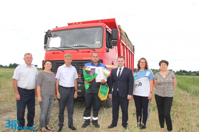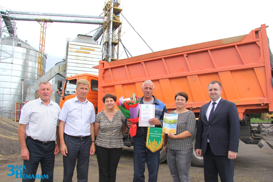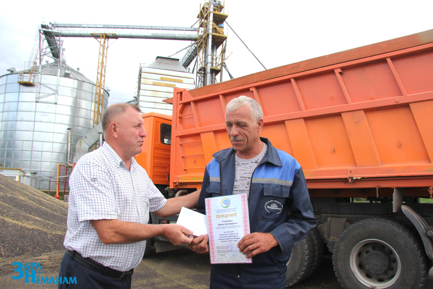 В этот же день перевёз тысячу тонн зерна опытный водитель этого же хозяйства Иван Стасевич. Его чествовали на зернотоку, куда он доставил зерно рапса. Иван Антонович неоднократно выходил победителем районного соревнования среди водителей на жатве. А в прошлом году получил новый МАЗ.