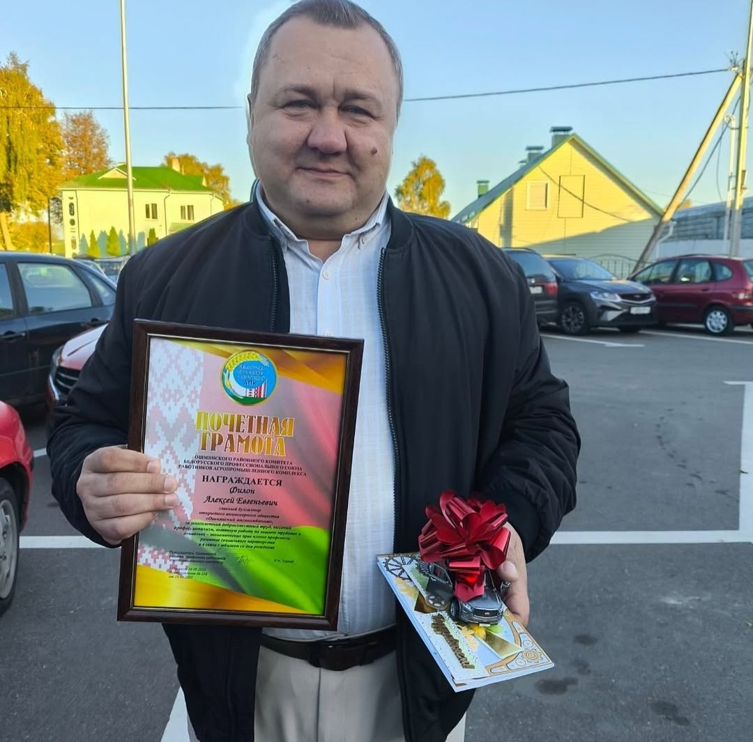 Почетной грамотой Ошмянского районного комитета Белорусского профессионального союза работников агропромышленного комплекса награжден Филон Алексей Евгеньевич