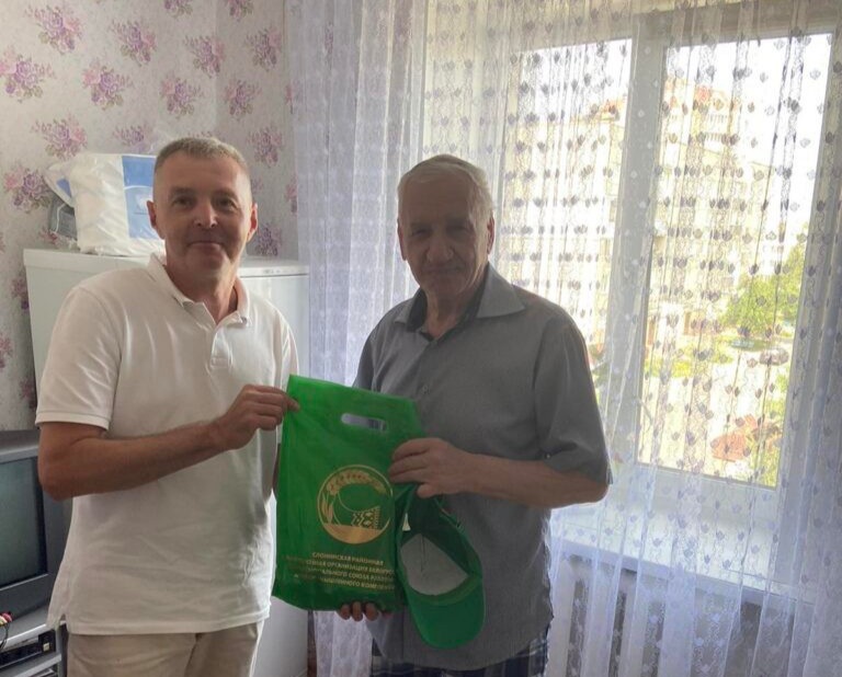 23 июня председатель Слонимского районного объединения профсоюзов Ольга Радевич и председатель Слонимского районного комитета профсоюза работников агропромышленного комплекса Александр Зинченко чествовали заслуженного рационализатора Республики Беларусь Вячеслава Голубовского.