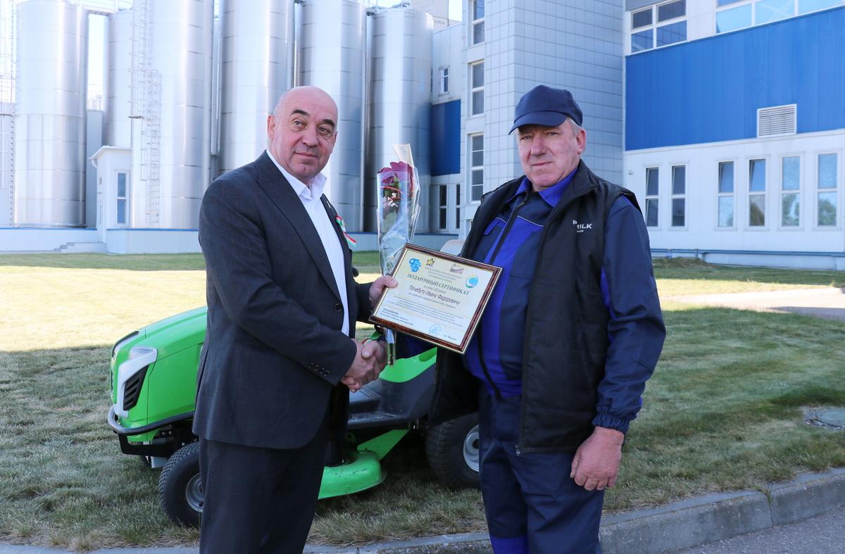 Следующий адрес для поздравления – ООО "Праймилк". Здесь награды нашли двух своих героев – Раису Кимашевскую, экономиста предприятия, и Ивана Почебута – подсобного рабочего.
