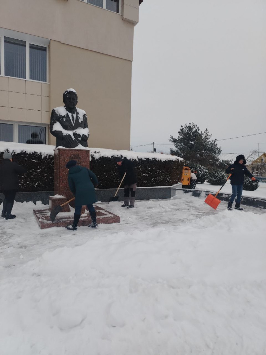 В субботнее утро, несмотря на мороз и снег, члены первичной профсоюзной организации ПК имени В.И. Кремко вышли на уборку снега!