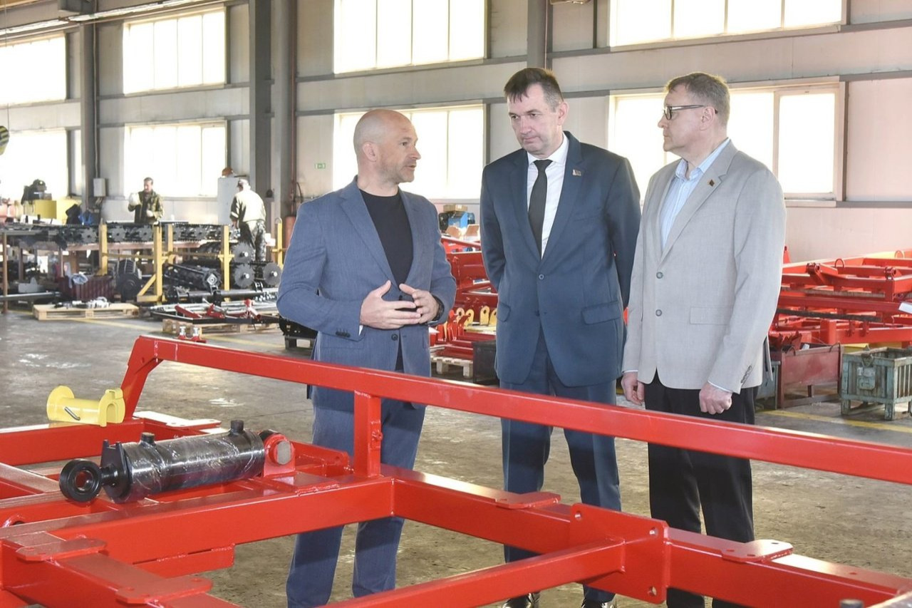 Помощник Президента – инспектор по Гродненской области Константин Бурак с рабочим визитом находится в Ивьевском районе. Первым пунктом в маршруте стало предприятие по выпуску сельхозмашин «ЛидаТехмаш», которое функционирует на месте бывшего консервного завода. Директор предприятия Александр Труханович ознакомил высокого гостя с деятельностью предприятия, которое специализируется на выпуске почвообрабатывающих агрегатов, провел по всем сборочных цехам, рассказал, как удалось выстоять вопреки санкциям и потерей рынков сбыта, а также поделился планами на будущее. – В 2024 году мы просели по экспорту на 25 %. Но уже в текущем году за 4 месяца мы имеем 35 % роста. Планируем по году выйти в плюс, – поделился Александр Труханович. – Трудности, возникшие из-за потери рынков сбыта, восприняли как временные. В настоящее время тесно работаем с казахстанским и российскими рынками. Принимаем активное участие в различных выставках промышленной продукции. Это дает возможность налаживать тесные контакты с экспортерами. Председатель Ивьевского райисполкома Игорь Генец добавил, что предприятие начало выпускать лесопосадочную машину, стоимость которой в два раза ниже зарубежных аналогов. Важным фактором является и то, что многие ивьевчане здесь нашли свое рабочее место. В настоящее время здесь трудится более 70% местного населения. - У меня сложилось очень хорошее впечатление о предприятии. Приятно, что слышишь не сетование на санкции, а оптимистические планы и понимание путей, как эти планы реализовывать, – сказал Константин Бурак. Далее помощник Президента – инспектор по Гродненской области ознакомился с модернизацией молочно-товарного комплекса СУП «Лаздуны-Агро», который планируется ввести в строй уже этим летом. Планируется, что в новых коровниках будут содержать 600 голов. А всего на комплексе общая численность поголовья составит 1500. Подрядчиком выступает СМТ-19 г. Лиды. На объекте трудится десять граждан из Бангладеша, рассказал начальник участка Давид Кошмариди. Тема трудовой миграции особенно актуальная в разрезе недавнего совещания у Президента. Все необходимые навыки мигранты приобрели непосредственно на предприятии. Начинали с подсобных работ, сейчас уже обрели определенные навыки. Вместе с этим выросла и их заработная плата, рассказал начальник участка. "Все они обеспечены жильем - предоставлено общежитие. Ведутся работы по осуществлению контроля за их социализацией, за условиями их проживания - за ними закреплены работники, интересуемся, нужна ли какая-либо помощь. Стараемся вместе преодолевать возникающие барьеры и трудности", - рассказал начальник участка.