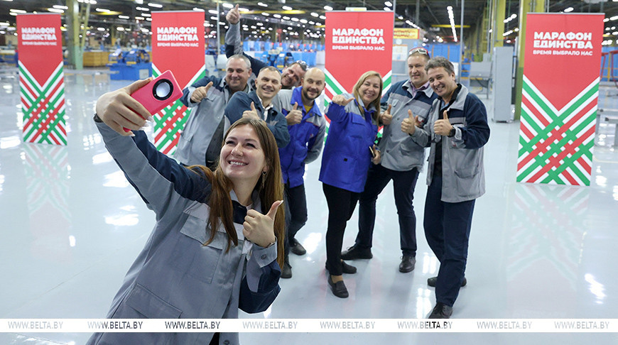 Вспоминая историю возникновения проекта "Одно дело делаем", который реализован в рамках "Марафона единства", Анна Лукашенко отметила, что он появился после одной из встреч на БМЗ, в разговоре о проектах "Марафона" и родилась идея встречи коллективов, которых и в самом деле связывает общее дело. "В дальнейшем обсуждении приняли решение, что (к металлургам. - Прим.БЕЛТА) необходимо пригласить представителей одного из предприятий, с которыми БМЗ связан производственной цепочкой. Таким образом родился проект "Одно дело делаем", - отметила она.