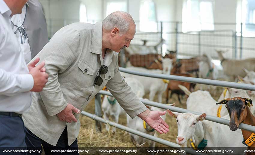 «Надо идти по максимуму. Если есть момент заработать деньги, надо зарабатывать, занимать рынок», — требует белорусский лидер. Александр Лукашенко подчеркнул, что это касается не только козоводства, но и других направлений в сельском хозяйстве. «Мы наплевательски относимся к сельскому хозяйству — упиваемся, что у нас всего хватает и почти на 7 млрд долларов мы продаем (на экспорт. — Прим.). А движения дальше нет. Вот как здесь, — сказал он. — Дело так дальше не пойдет, что мы ни шатко ни валко работаем».