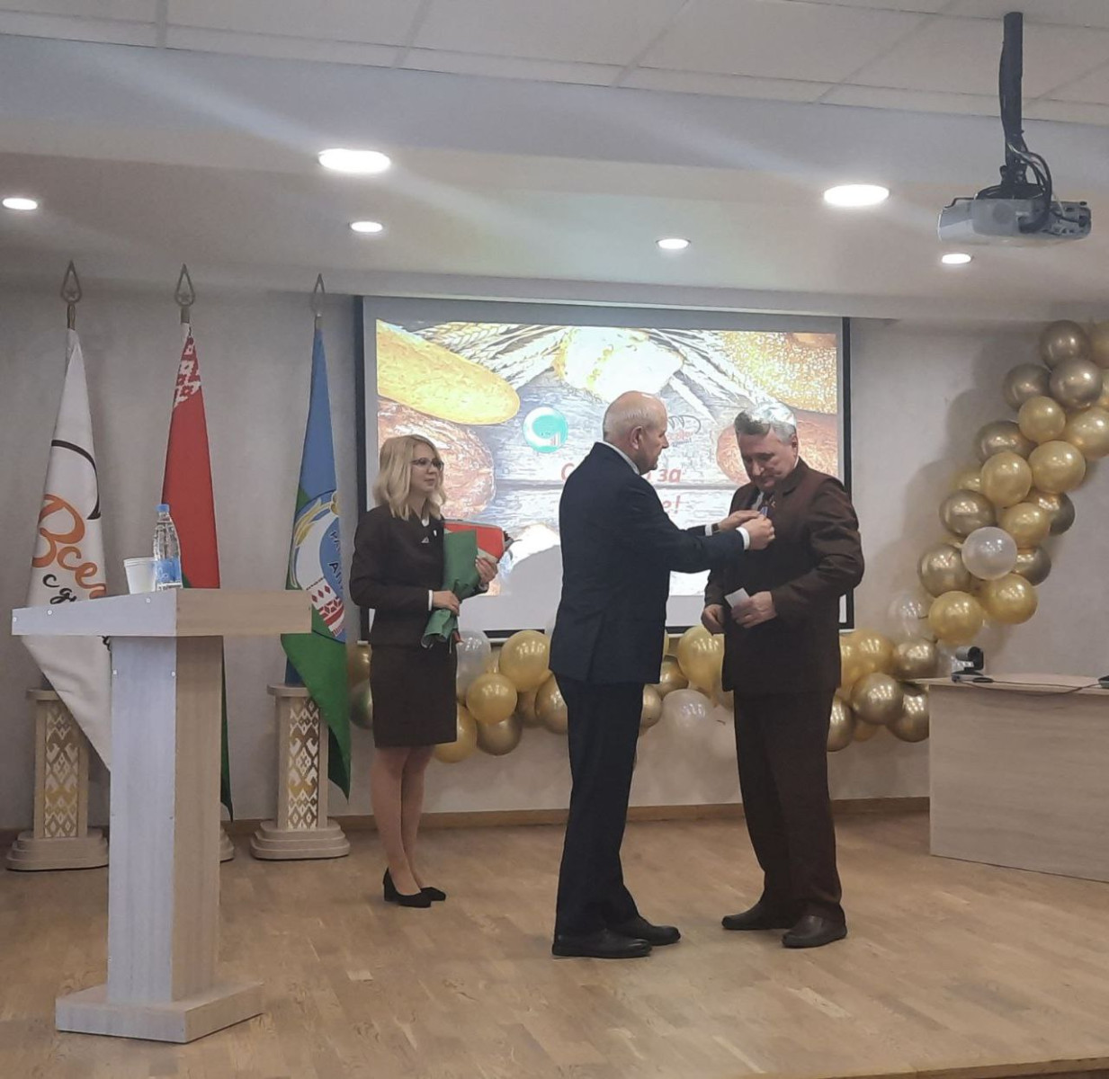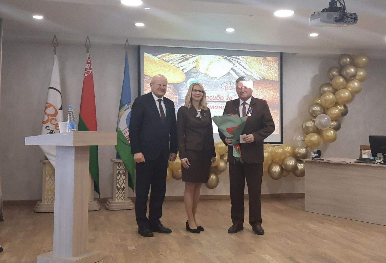 Председатель Гродненской областной профсоюзной организации Белорусского профсоюзного союза работников агропромышленного комплекса вручил почетную награду.