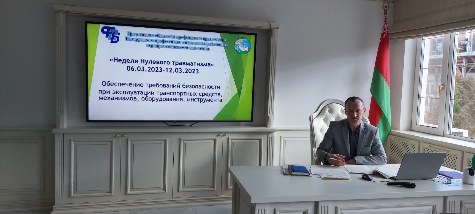 6 марта 2023 года в рамках проведения мероприятий «Неделя нулевого травматизма» главный технический инспектор труда Гродненской областной профсоюзной организации работников агропромышленного комплекса Виталий Крыштопик посетил ОАО «Гродненский мясокомбинат».