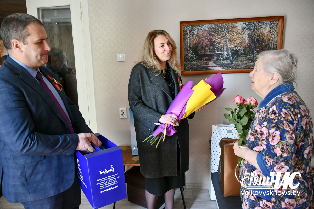 К поздравлениям присоединился и профсоюз работников агропромышленного комплекса Гродненской области. С подарками и теплыми словами благодарности за мирное небо в гости к ветранам заглянули лидер агропрофсоюза Гродненщины Ромуальд Юровский, председатель Волковысского райкома отраслевого профсоюза Валентин Заяц, руководство и профсоюзные активисты Волковысского ОАО «Беллакт» и ОАО «Волковысский мясокомбинат».