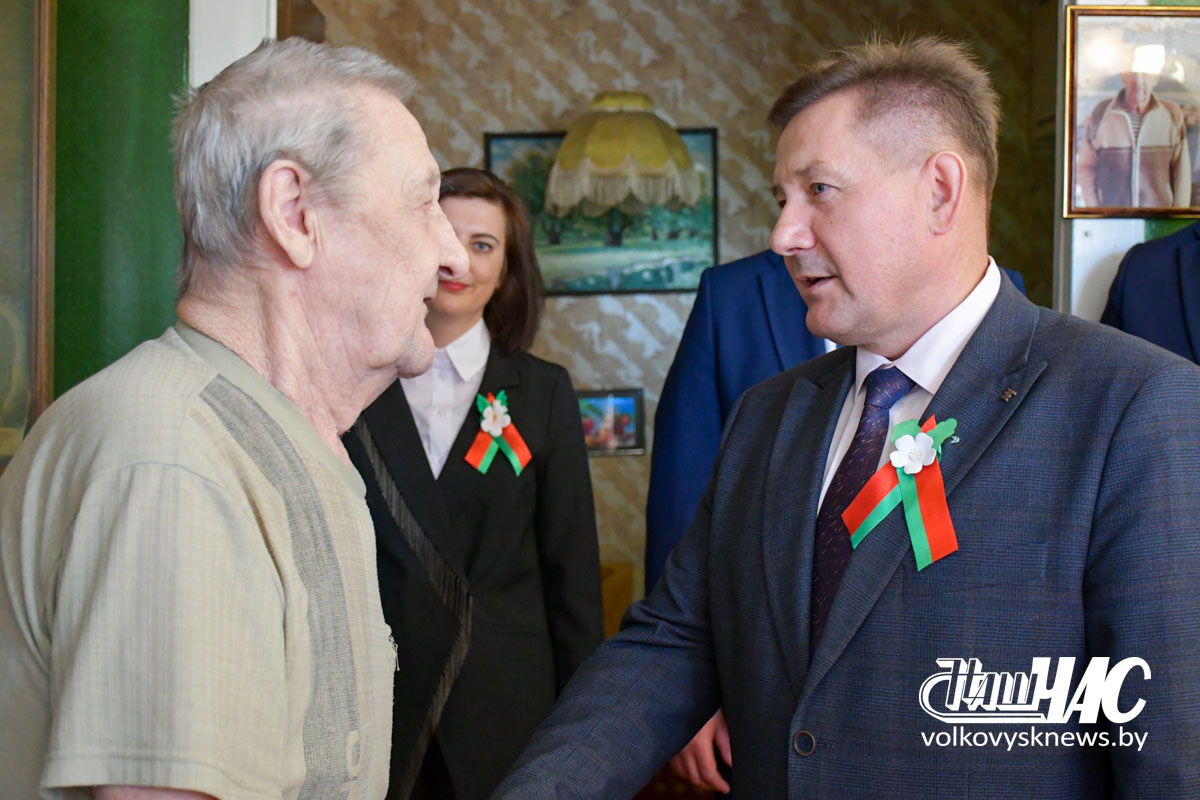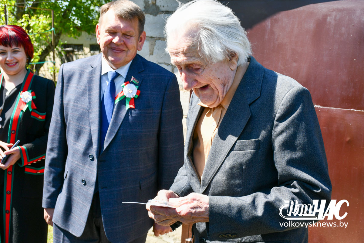 Также слова благодарности ветеранам Великой Отечественной войны выразили депутат Палаты представителей Национального собрания Республики Беларусь по Волковысскому избирательному округу № 48 Виктор Плескач, председатель Волковысского районного Совета депутатов Сергей Якимович, заместитель председателя Волковысского райисполкома, председатель районного отделения Белорусской партии «Белая Русь» Игорь Соловей, военный комиссар Волковысского, Берестовицкого и Свислочского районов полковник Владимир Герасимчук, представители райисполкома, районного совета ветеранов, территориального центра социального обслуживания населения, райкома ОО «БРСМ», районного отделения Белорусской партии «Белая Русь».